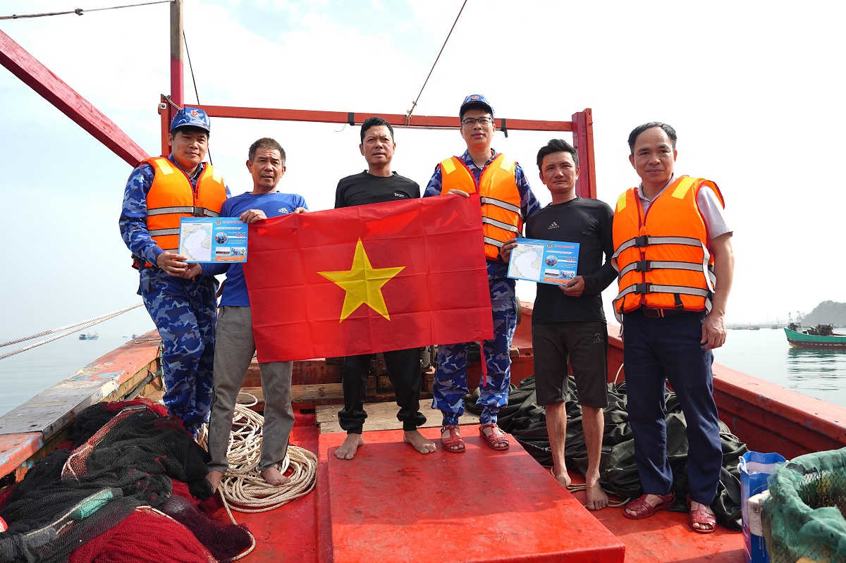 Tuyên truyền pháp luật và tặng quà cho ngư dân trên khu vực biển Bạch Long Vĩ.