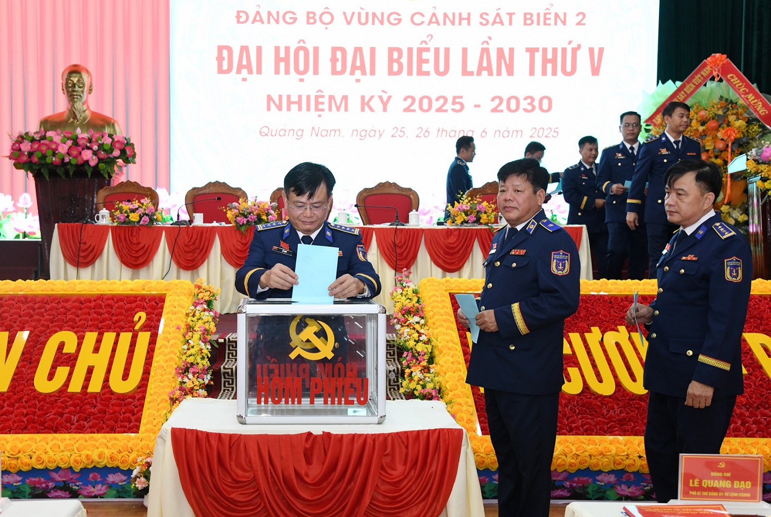 Trong hai ngày 25, 26/6, tại tỉnh Quảng Nam, Bộ Tư lệnh Vùng Cảnh sát biển 2 tổ chức Đại hội đại biểu Đảng bộ lần thứ V, nhiệm kỳ 2025 - 2030. Trung tướng Lê Quang Đạo - Phó Bí thư Đảng ủy, Tư lệnh Cảnh sát biển Việt Nam dự và chỉ đạo Đại hội.