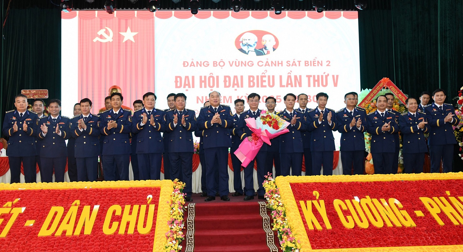 Trung tướng Lê Quang Đạo tặng hoa chúc mừng Ban Chấp hành Đảng bộ Vùng Cảnh sát biển 2 nhiệm kỳ 2025 - 2030 và Đoàn đại biểu dự Đại hội đại biểu Đảng bộ Cảnh sát biển Việt Nam lần thứ VI.