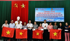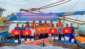 (Canhsatbien.vn) - Chiều 25/11, Đoàn Trinh sát số 1 phối hợp với Đảng ủy, Hội đồng nhân dân, Ủy ban nhân dân, Ủy ban Mặt trận Tổ quốc xã Giao Phúc (tỉnh Ninh Bình), Đồn Biên phòng Quất Lâm (Bộ đội Biên phòng tỉnh Ninh Bình) tổ chức tuyên truyền chống khai thác IUU và thực hiện chương trình công tác dân vận “Cảnh sát biển với đồng bào dân tộc, tôn giáo” cho ngư dân địa phương.