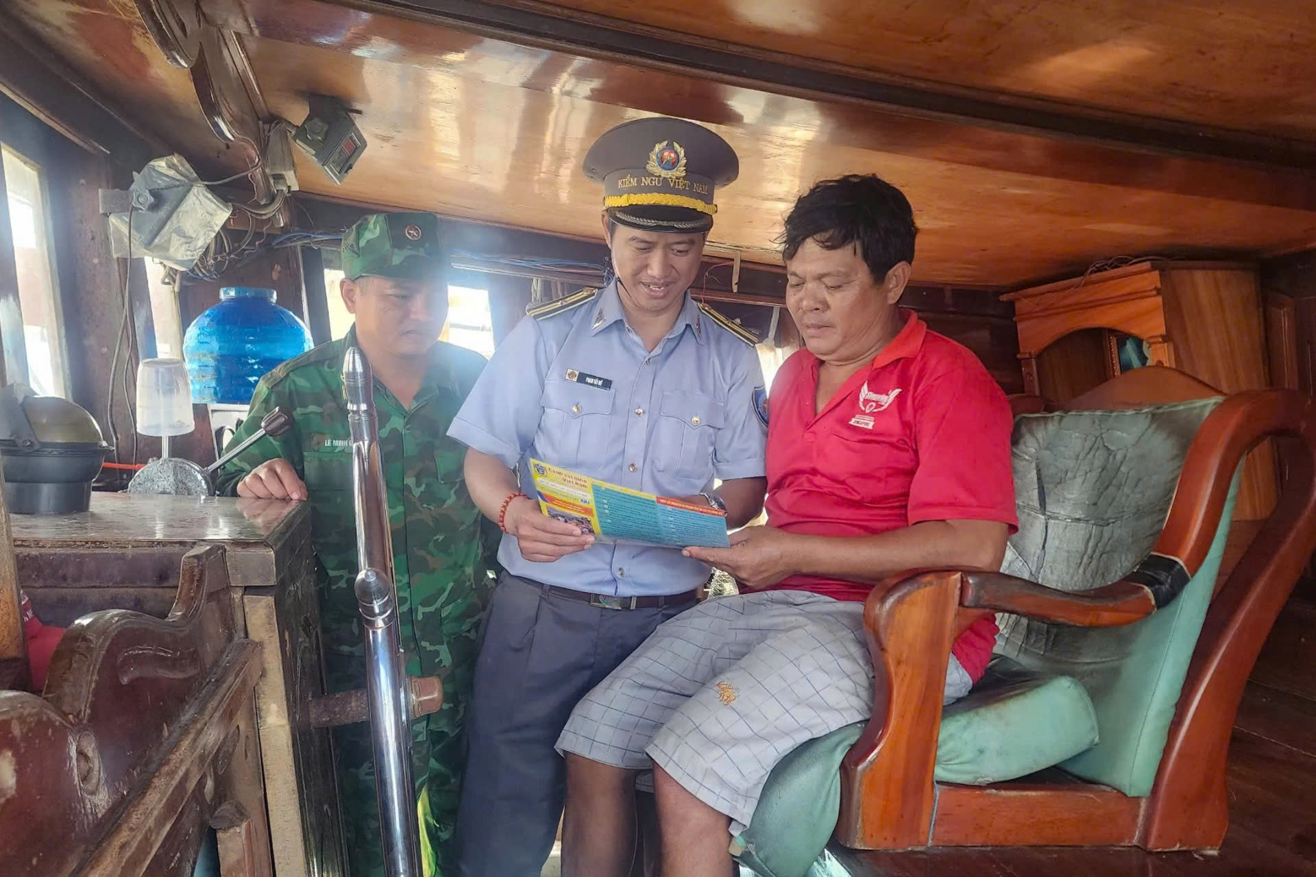 Lực lượng chức năng Chi đội Kiểm ngư số 4 phối hợp tuyên truyền pháp luật cho ngư dân.