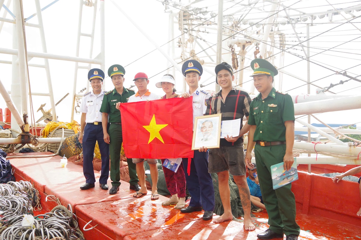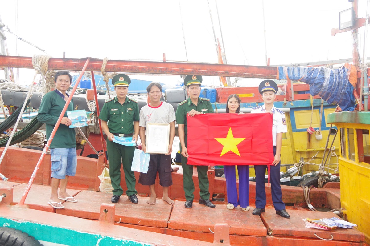 Tại buổi tuyên truyền, tổ công tác đã tặng 100 lá cờ Tổ quốc, 100 ảnh Bác Hồ 200 sổ tay tuyên truyền pháp luật cho thuyền trưởng, chủ tàu cá, ngư dân và thuyền viên trên các tàu.