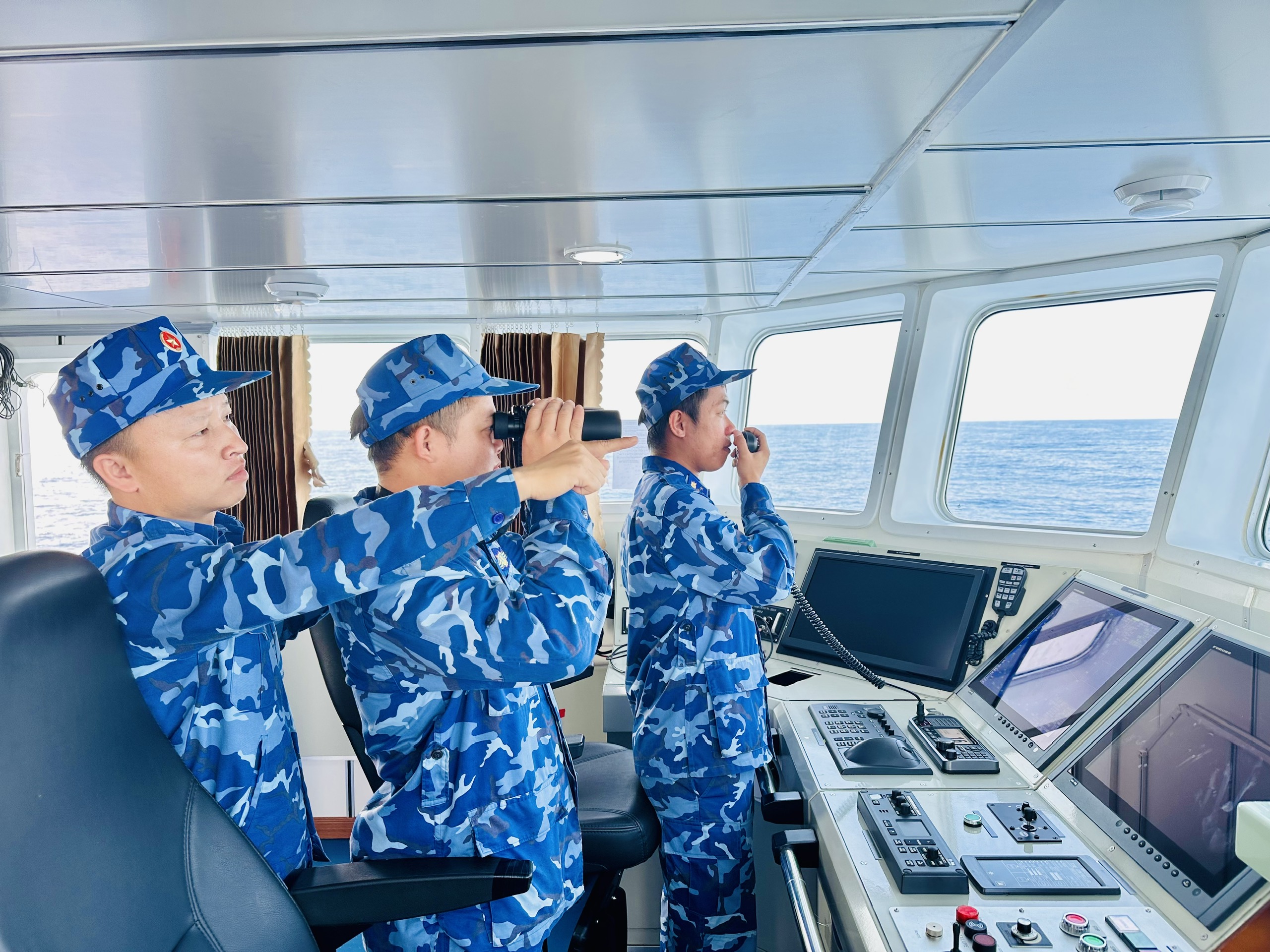 Cán bộ, chiến sĩ Tàu CSB 4040, Hải đội 401, Bộ Tư lệnh Vùng Cảnh sát biển 4 tích cực quan sát, nắm tình hình trên biển.
