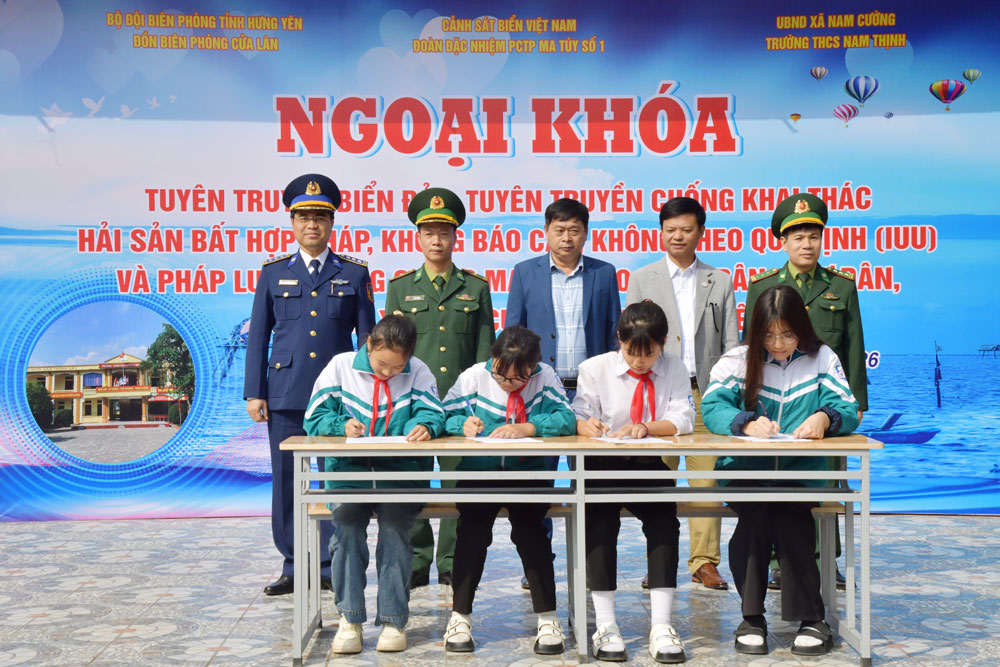 Ông Nguyễn Thái Dương - Hiệu trưởng trường THCS Nam Thịnh cho biết: xã Nam Cường là địa bàn giáp biển, tình hình an ninh trật tự, nhất là tội phạm ma túy diễn ra phức tạp. Thời gian qua, Ban giám hiệu nhà trường đã thường xuyên nhận được sự quan tâm, phối hợp, tạo điều kiện của Lực lượng Cảnh sát biển và Bộ đội Biên phòng, đặc biệt là trong công tác tuyên truyền, phổ biến giáo dục pháp luật. Thông qua các hoạt động tuyên truyền đã giúp đội ngũ cán bộ, giáo viên, học sinh và nhân dân trên địa bàn xã nâng cao nhận thức pháp luật, hiểu rõ hơn những hệ lụy của tệ nạn ma túy, từ đó xác định tốt trách nhiệm, chủ động phòng ngừa, tích cực tham gia đấu tranh, tố giác tội phạm và tệ nạn xã hội.