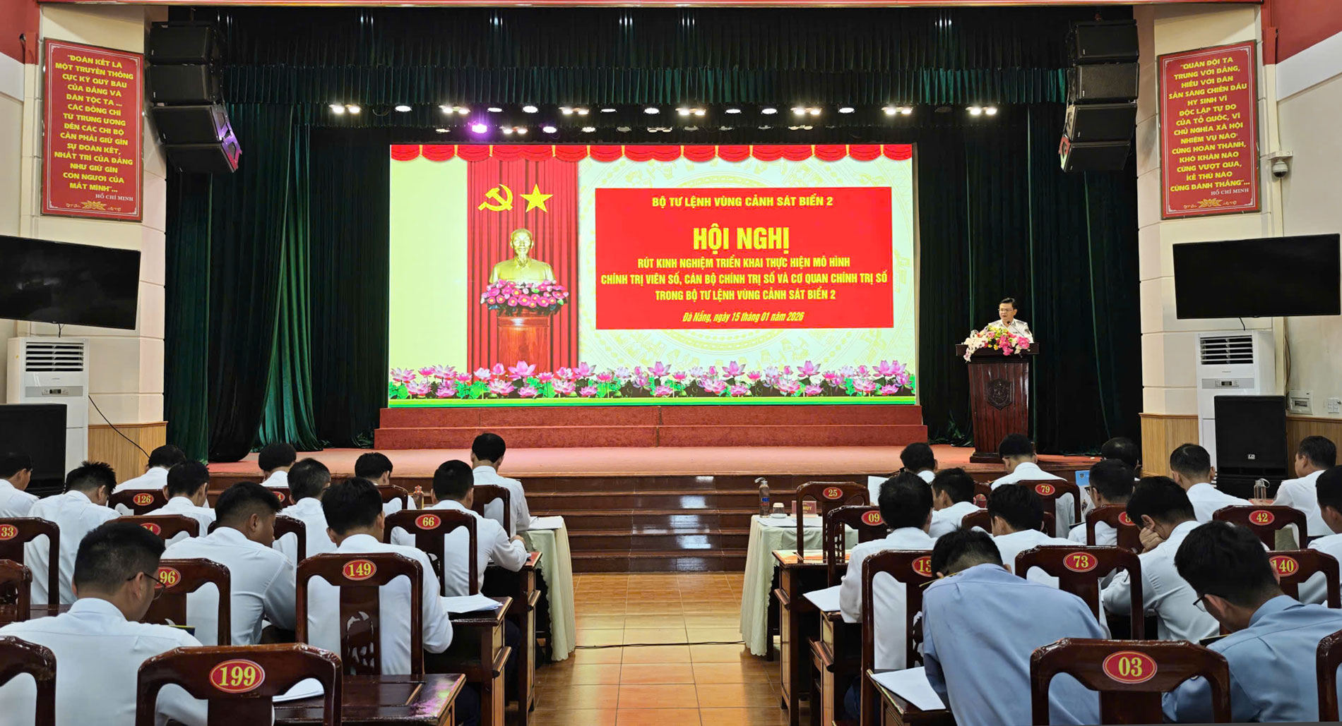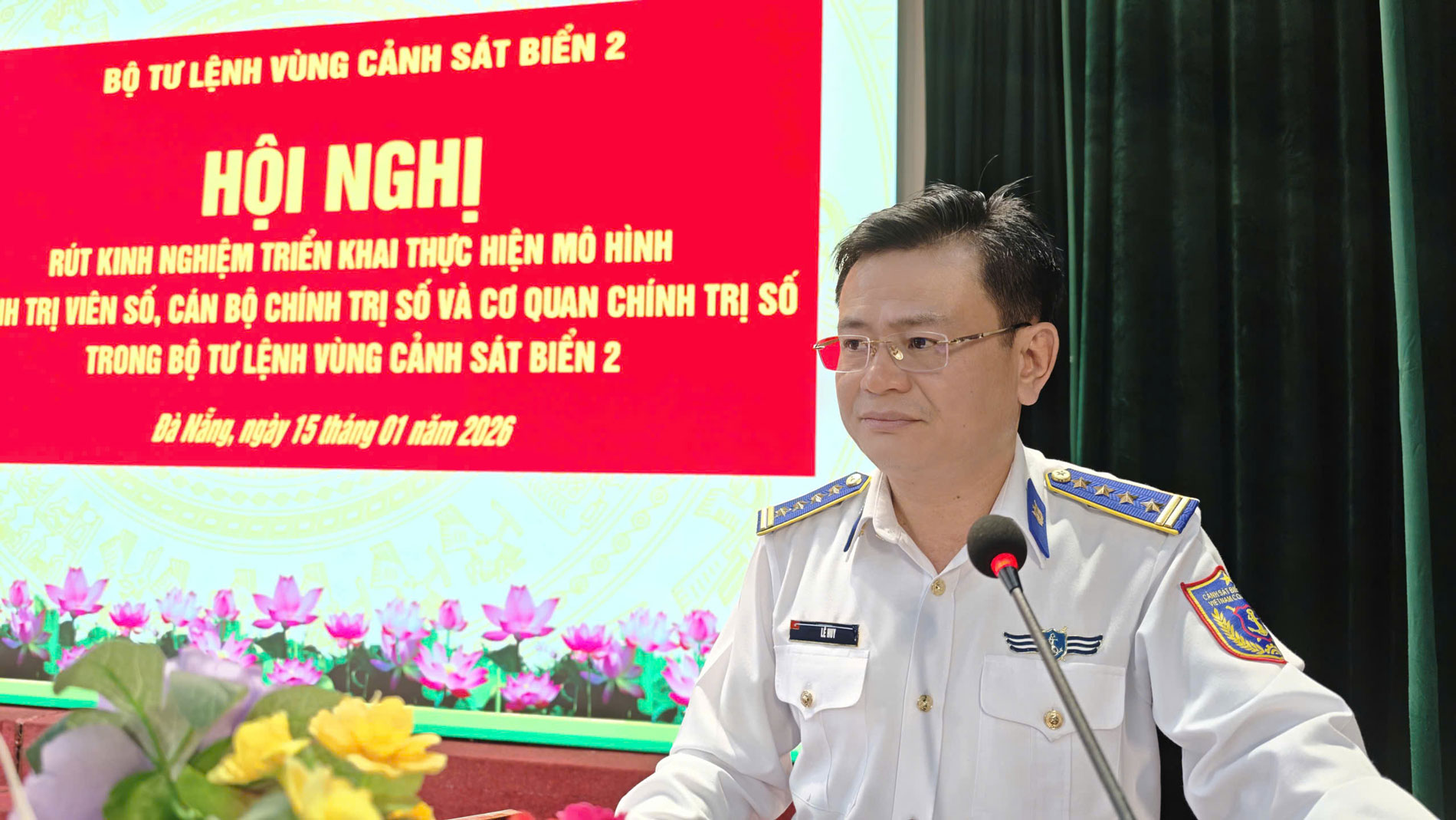 Ngày 15/1, Bộ Tư lệnh Vùng Cảnh sát biển 2 đã tổ chức Hội nghị rút kinh nghiệm triển khai thực hiện mô hình “Chính trị viên số, cán bộ chính trị số và cơ quan chính trị số” trong toàn đơn vị. Đại tá Lê Huy - Chính ủy Bộ Tư lệnh Vùng chủ trì Hội nghị.