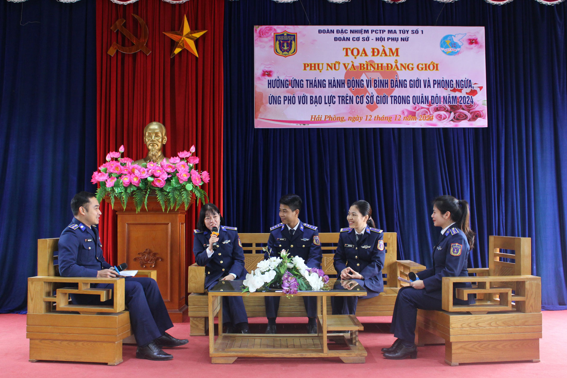Ngày 12/12, tại TP. Hải Phòng, Hội Phụ nữ Đoàn Đặc nhiệm PCPT ma túy số 1 tổ chức chương trình toạ đàm hưởng ứng Tháng hành động vì bình đẳng giới và phòng ngừa, ứng phó với bạo lực trên cơ sở giới trong Quân đội năm 2024. Tham dự buổi tọa đàm có các đồng chí trong Đảng ủy, Chỉ huy đơn vị; đại biểu đoàn thanh niên, hội phụ nữ địa phương và đơn vị kết nghĩa cùng toàn thể cán bộ, đoàn viên thanh niên, hội viên phụ nữ trong đơn vị.