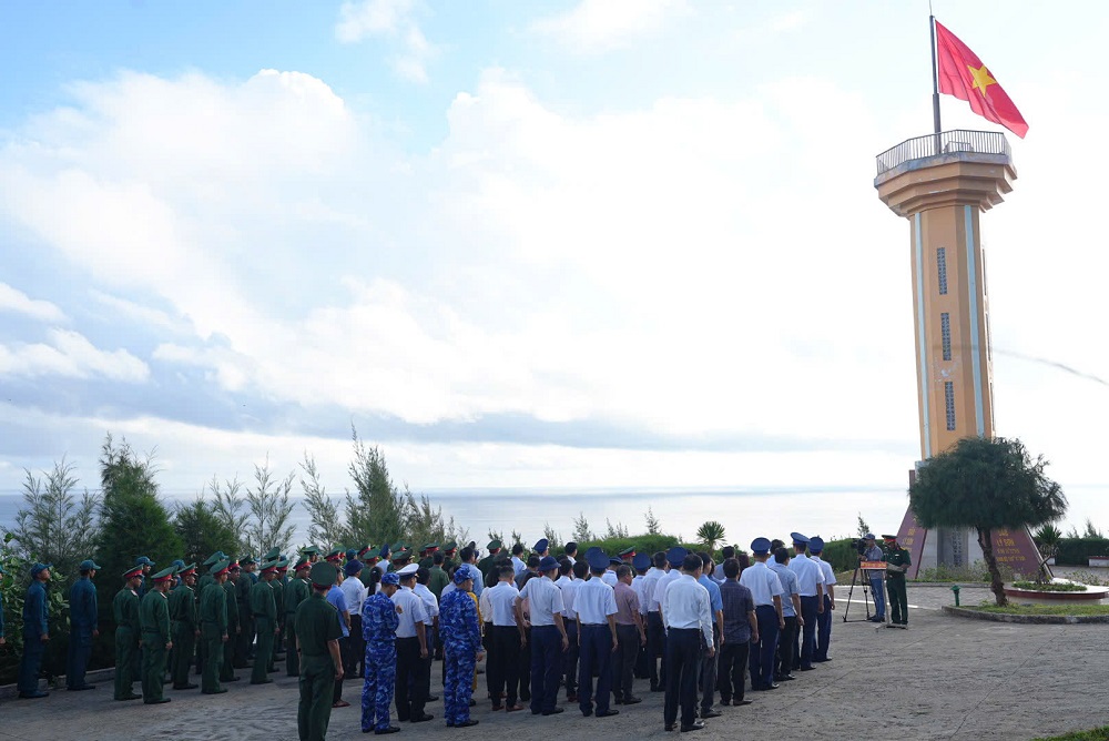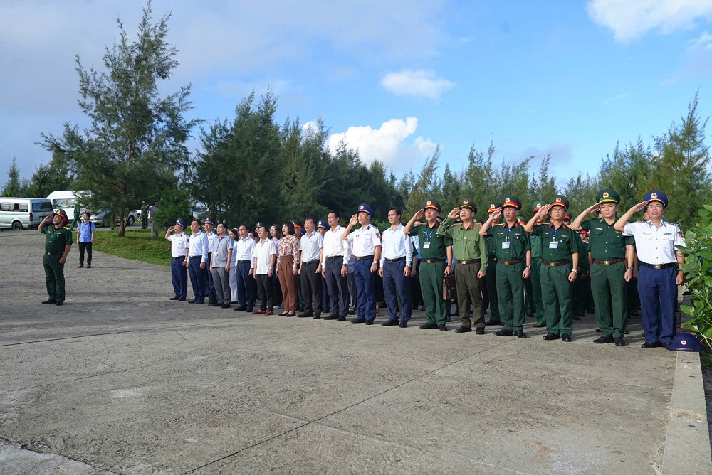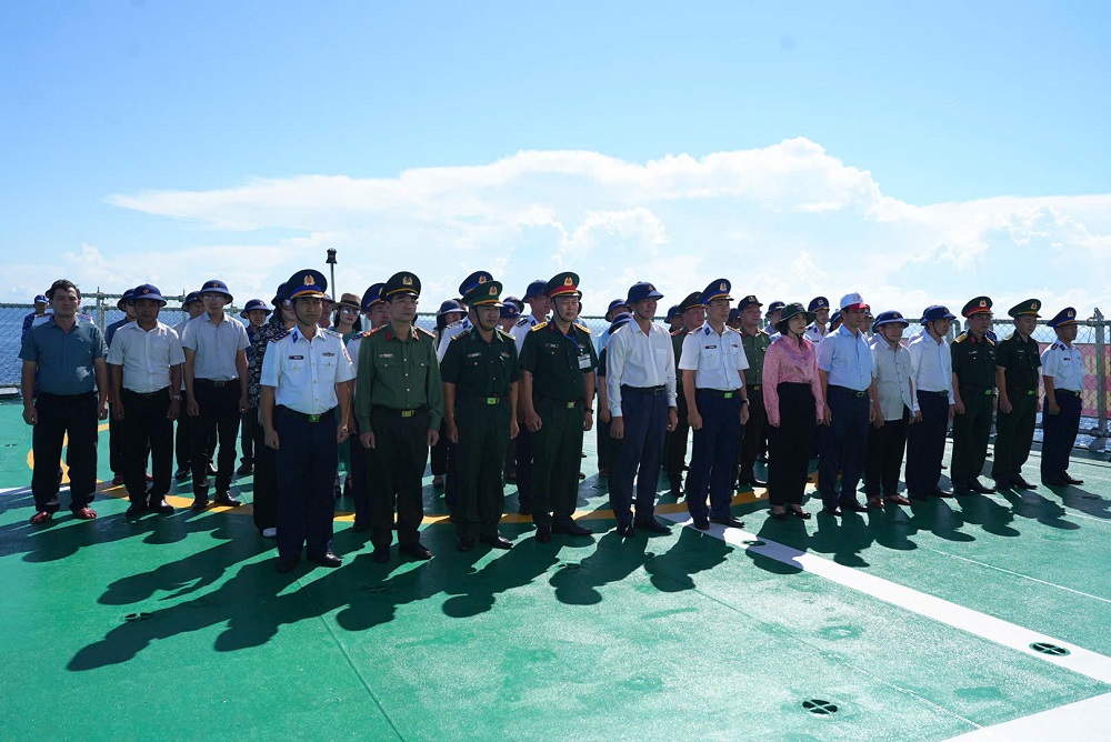 Ngay sau khi lên đảo, đoàn công tác đã tổ chức Lễ chào cờ. Trong không khí trang nghiêm, trước lá cờ đỏ sao vàng tung bay giữa biển trời Tổ quốc, các đại biểu và cán bộ, chiến sĩ đã cùng nhau hát vang Quốc ca và ôn lại truyền thống hào hùng mà các thế hệ đi trước đã dày công vun đắp nơi hòn đảo tiền tiêu đầy nắng gió.