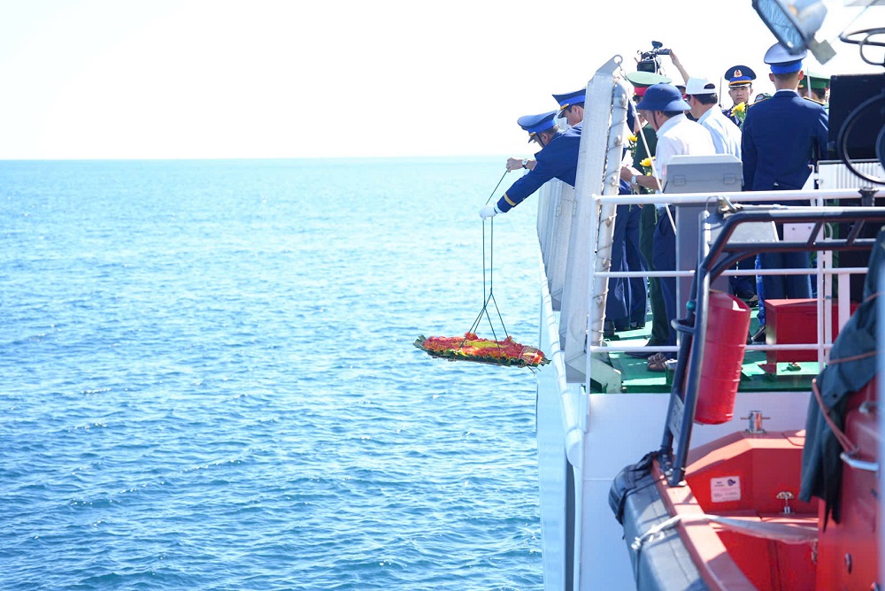 Trước đó, chiều 14/10, trên hành trình đến đảo Lý Sơn, đoàn công tác đã tổ chức Lễ tưởng niệm các anh hùng liệt sĩ tàu không số tại điểm C43B thuộc bãi biển Quy Thiện, xã Khánh Cường, tỉnh Quảng Ngãi. Trong cuộc kháng chiến chống Mỹ cứu nước, các anh hùng trên tàu không số đã anh dũng hy sinh nơi đây, góp phần làm nên huyền thoại “Đường Hồ Chí Minh trên biển”.