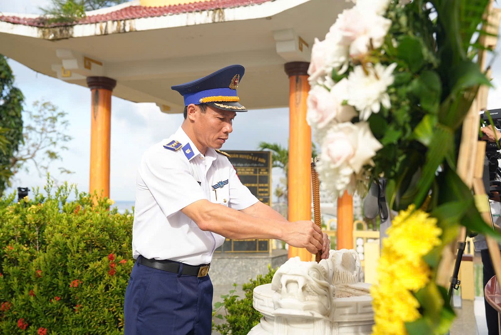 Đại tá Trần Hồng Quế - Phó Chính ủy Bộ Tư lệnh Vùng Cảnh sát biển 2, trưởng đoàn công tác dâng hương tại Nghĩa trang Liệt sĩ đặc khu Lý Sơn.