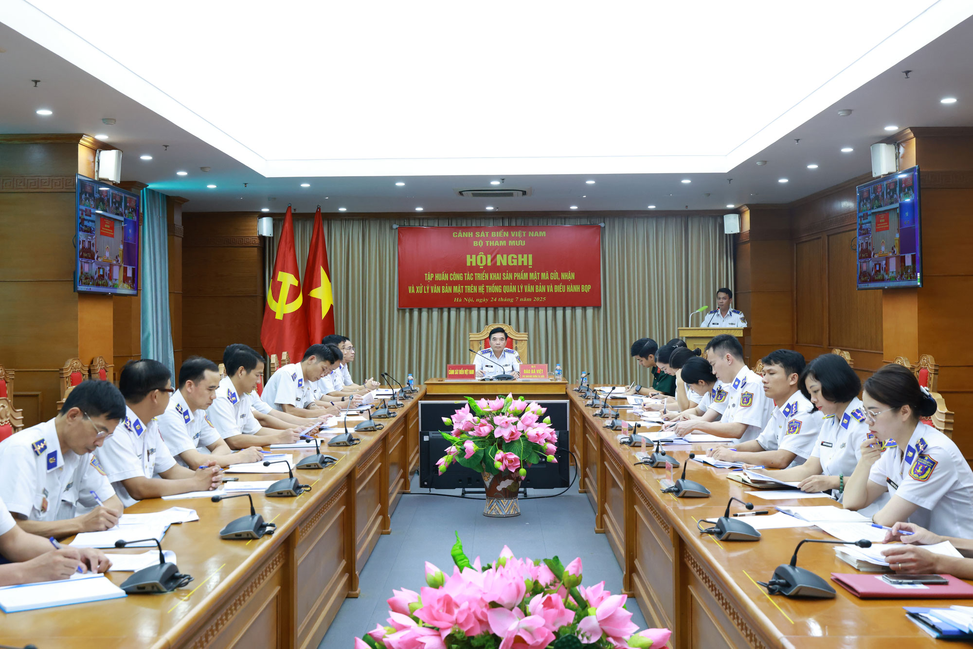 Dự Hội nghị tập huấn có đại biểu Văn phòng Bộ Quốc phòng, thủ trưởng, cán bộ, nhân viên Phòng Cơ yếu Cảnh sát biển; cán bộ, nhân viên làm công tác văn thư bảo mật của các cơ quan, đơn vị. Hội nghị được tổ chức trực tuyến đến 11 điểm cầu trong toàn Lực lượng.