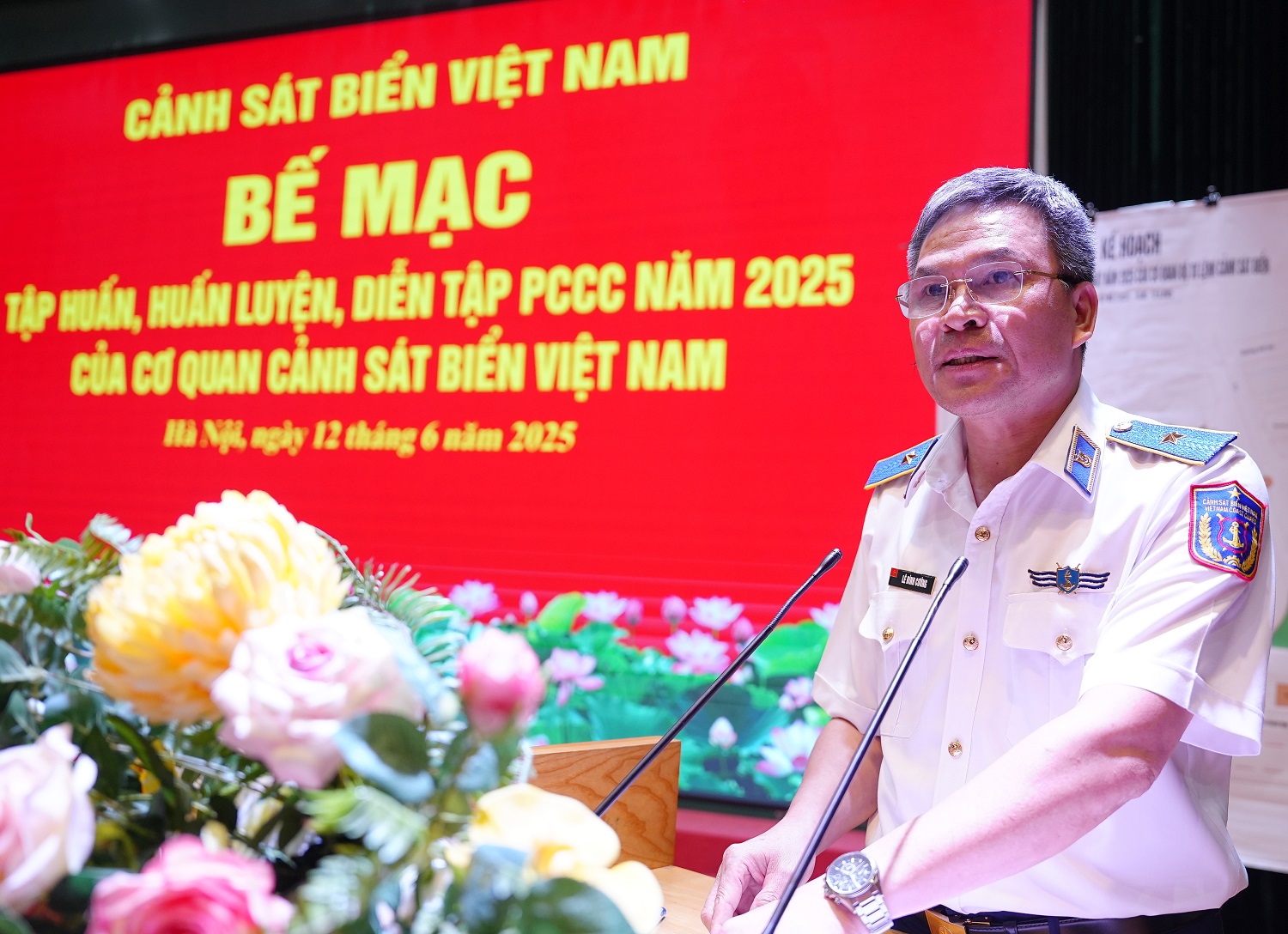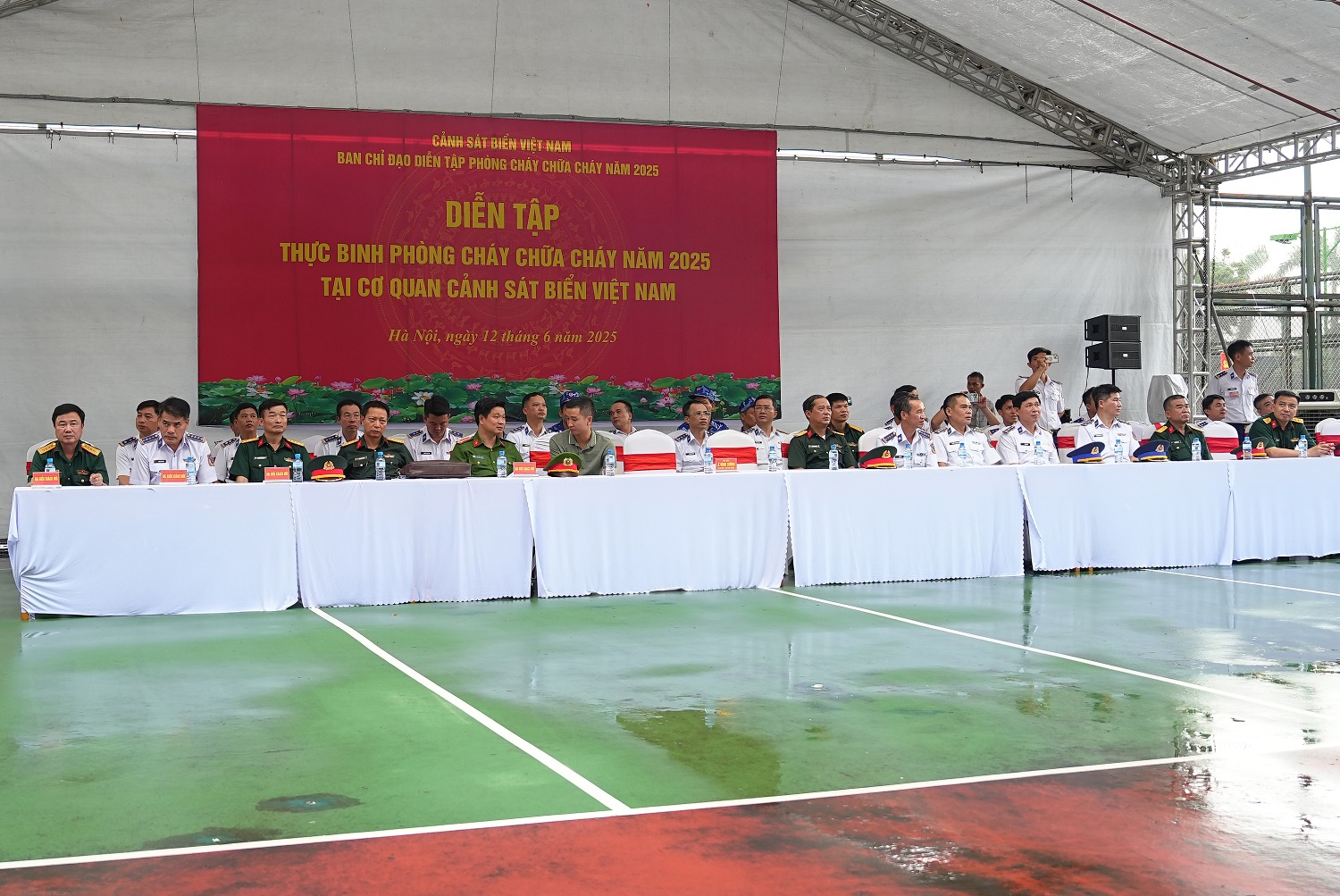 Sau hai ngày tập huấn và luyện tập, chiều 12/6, tại Hà Nội, cơ quan Bộ Tư lệnh Cảnh sát biển đã tổ chức diễn tập thực binh và tiến hành bế mạc, tổng kết, rút kinh nghiệm phương án phòng cháy, chữa cháy (PCCC) năm 2025. Thiếu tướng Lê Đình Cường - Phó Tư lệnh, Tham mưu trưởng Cảnh sát biển Việt Nam dự, chỉ đạo diễn tập và phát biểu bế mạc.