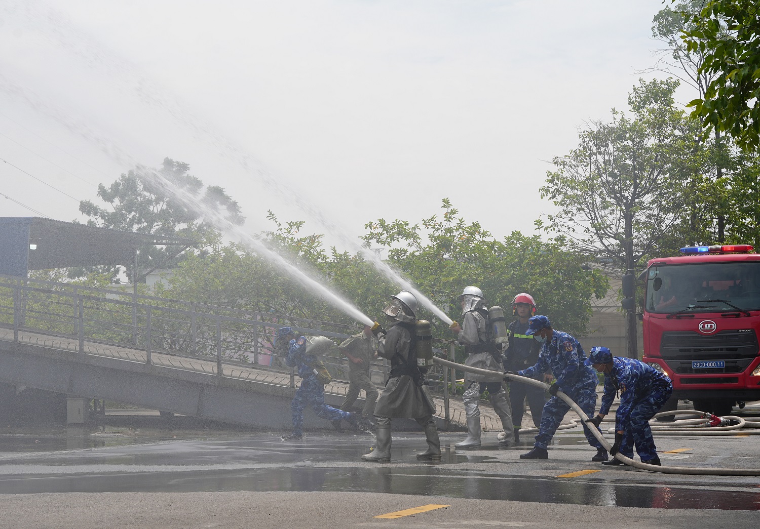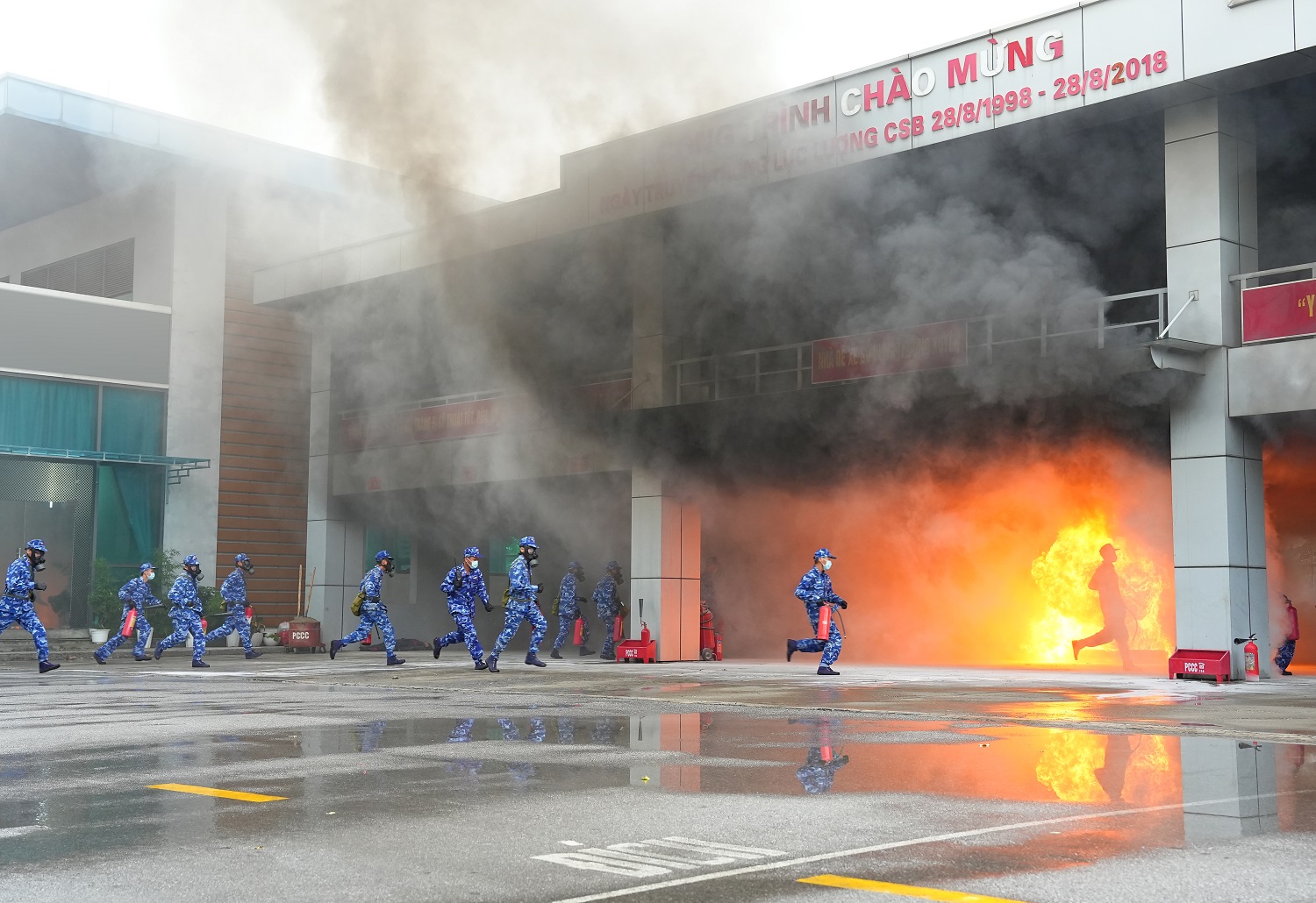 Trong khuôn khổ buổi diễn tập thực binh, cơ quan Bộ Tư lệnh Cảnh sát biển phối hợp với Phòng Cảnh sát PCCC và Cứu nạn, cứu hộ/Công an thành phố Hà Nội đã tổ chức triển khai đồng bộ các phương án chữa cháy và cứu hộ, cứu nạn tại hai khu vực trọng yếu: nhà xe và nhà khách.