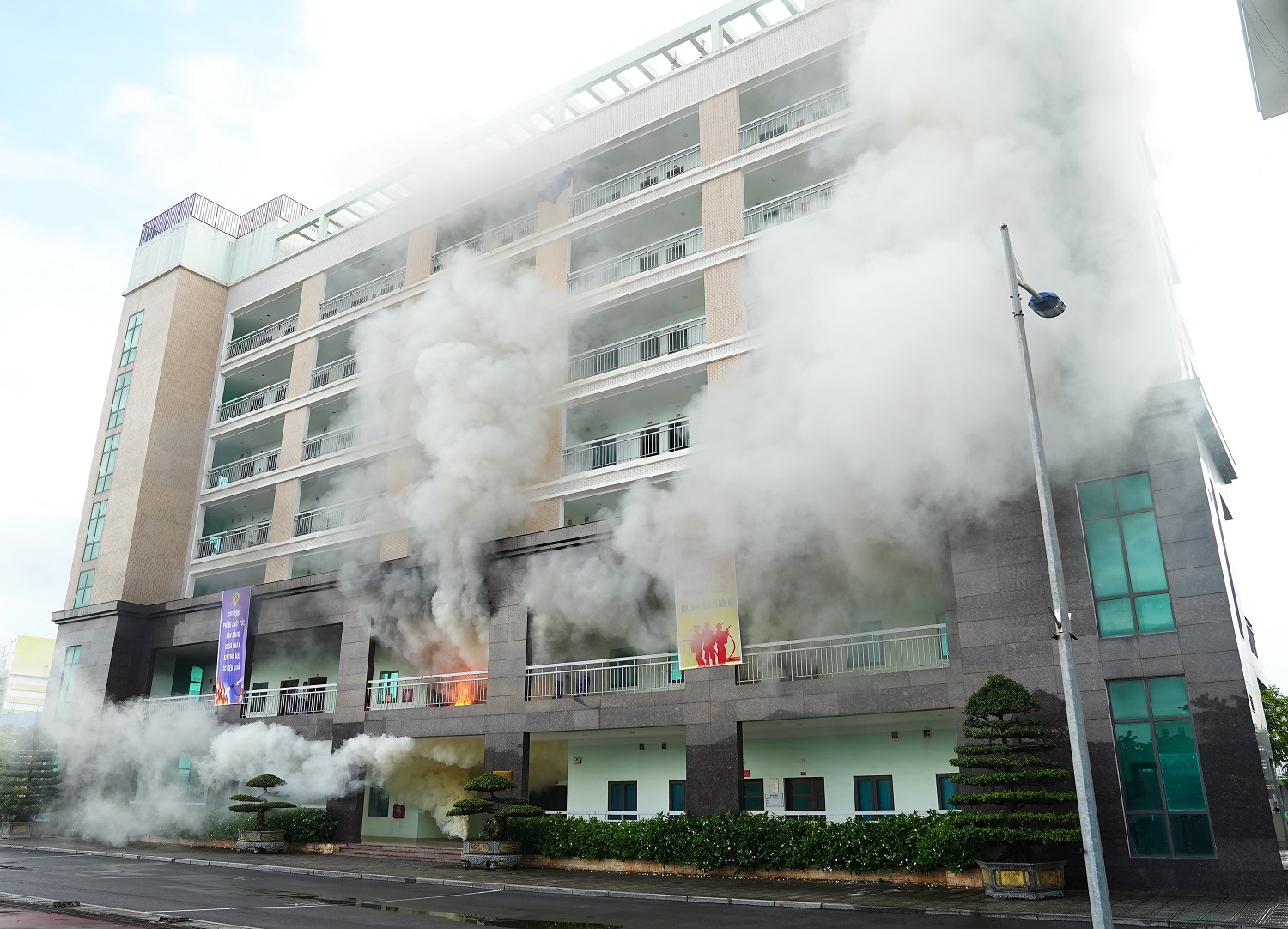 Tình huống giả định thứ hai là đám cháy xảy ra tại nhà khách Cảnh sát biển Việt Nam.