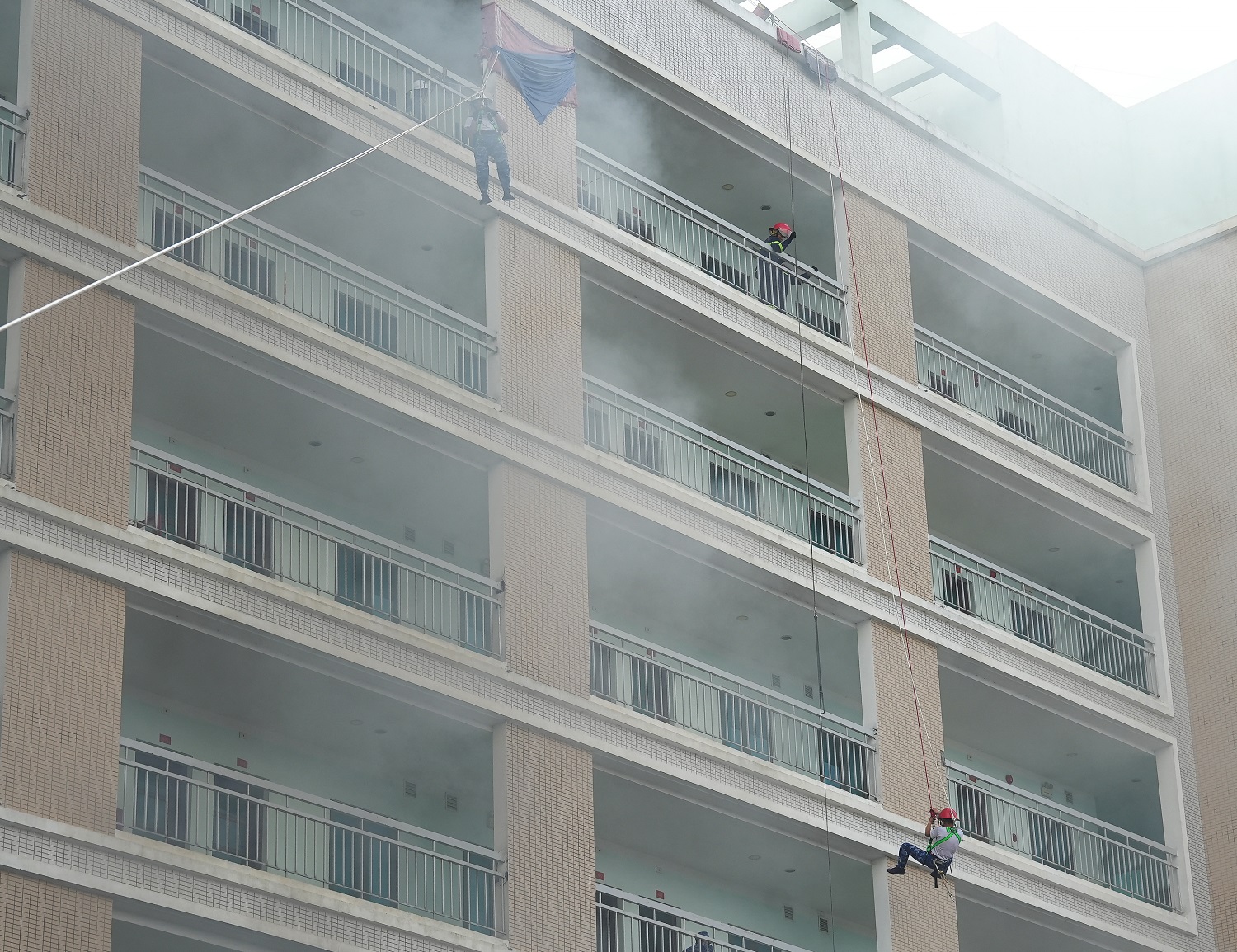 Tình huống giả định thứ hai được xây dựng sát thực tế, phức tạp và có diễn biến bất ngờ. Một vụ cháy xả ra do chập điện từ quạt gió xảy ra tại phòng 203 nhà khách Cảnh sát biển Việt Nam, trong khi lực lượng chữa cháy đang xử lý thì bất ngờ xảy ra vụ nổ thứ cấp tại tầng 6 do rò rỉ khí gas gặp nhiệt độ cao, khiến một nạn nhân bị mắc kẹt. Trong điều kiện tiếp cận khó khăn, các lực lượng đã tổ chức cứu nạn bằng hệ thống xe thang, xe cần vươn, thiết bị hút khói, dây ròng rọc, cầu dây nghiêng,… để cứu người bị nạn và dập tắt đám cháy.