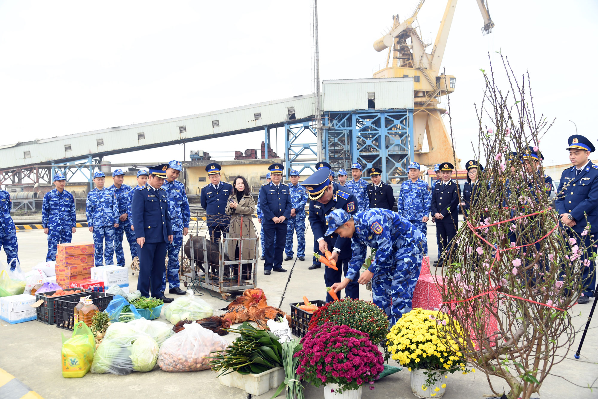 Lãnh đạo Hải quan cửa khẩu cảng Đình Vũ tặng quà Tết cho tàu CSB 4036.