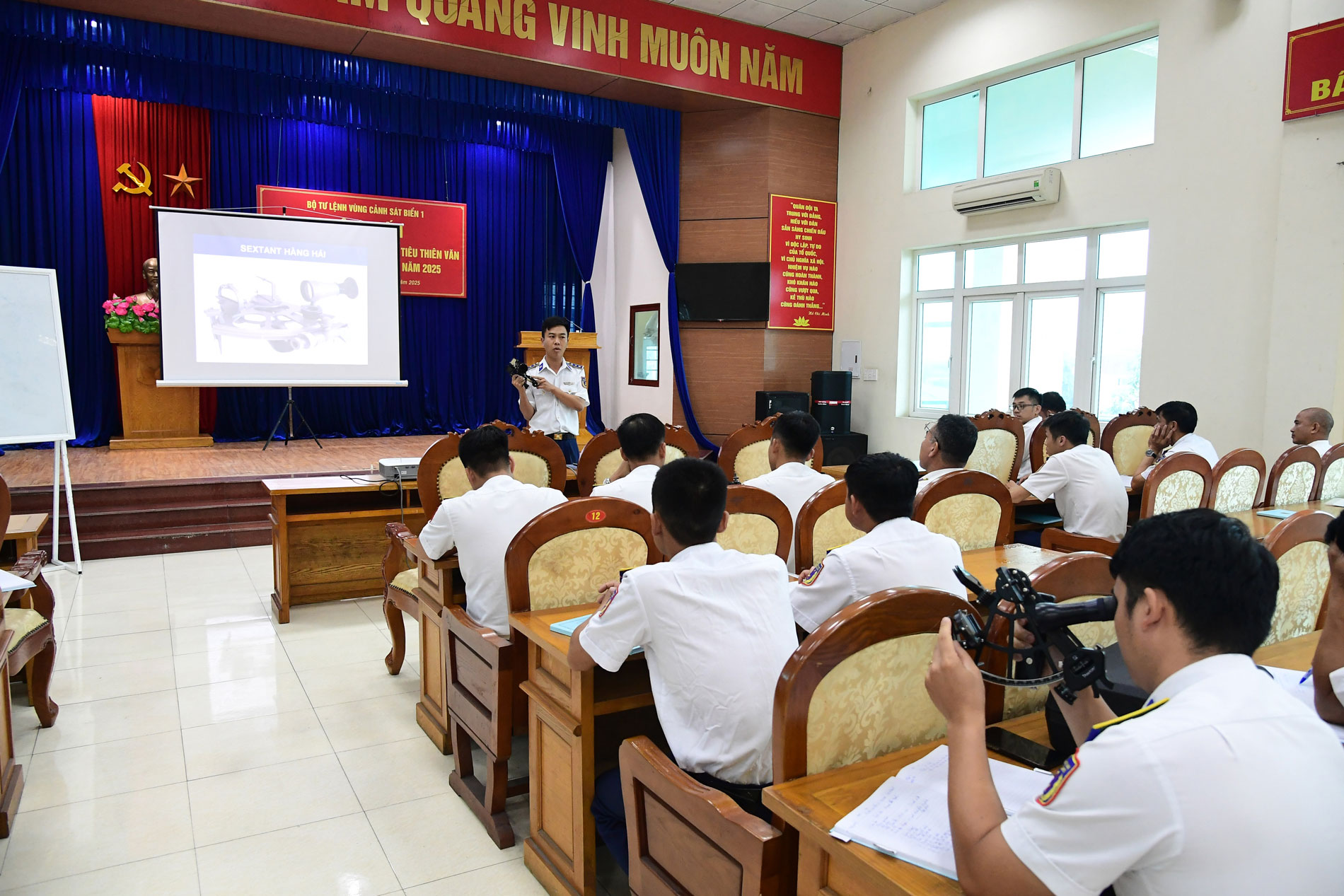 Thời gian tập huấn diễn ra trong 3 ngày. Cán bộ, nhân viên hàng hải trong toàn Bộ Tư lệnh Vùng được tập huấn các nội dung: xác định vị trí tàu bằng 2 sao, 3 sao; xác định vị trí tàu bằng mặt trời di tuyến; xác định riêng lẻ vĩ độ bằng mặt trời và sao Bắc cực.