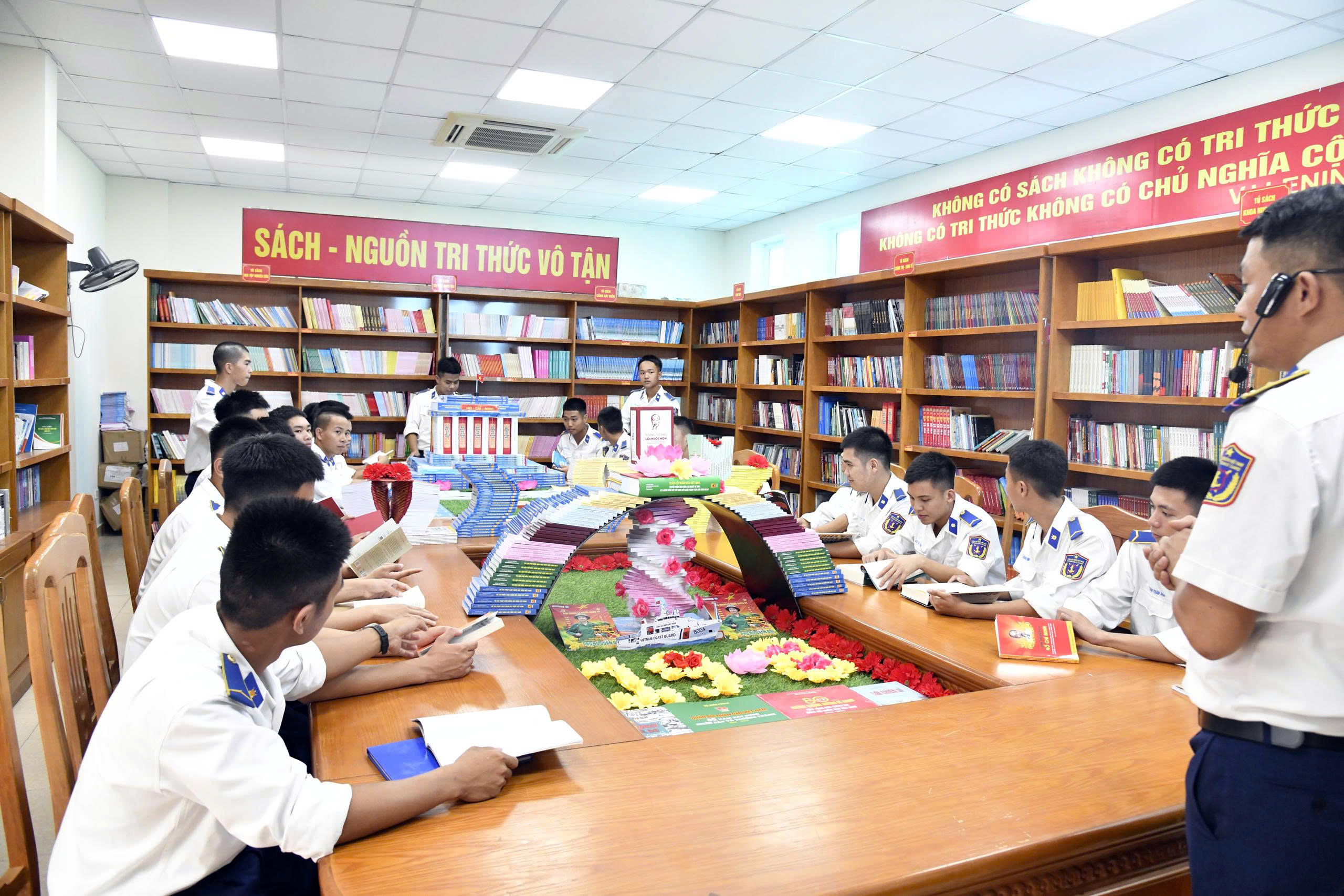 Chiến sĩ mới tham quan khu trưng bày, giới thiệu sách của BTL Vùng Cảnh sát biển 1.