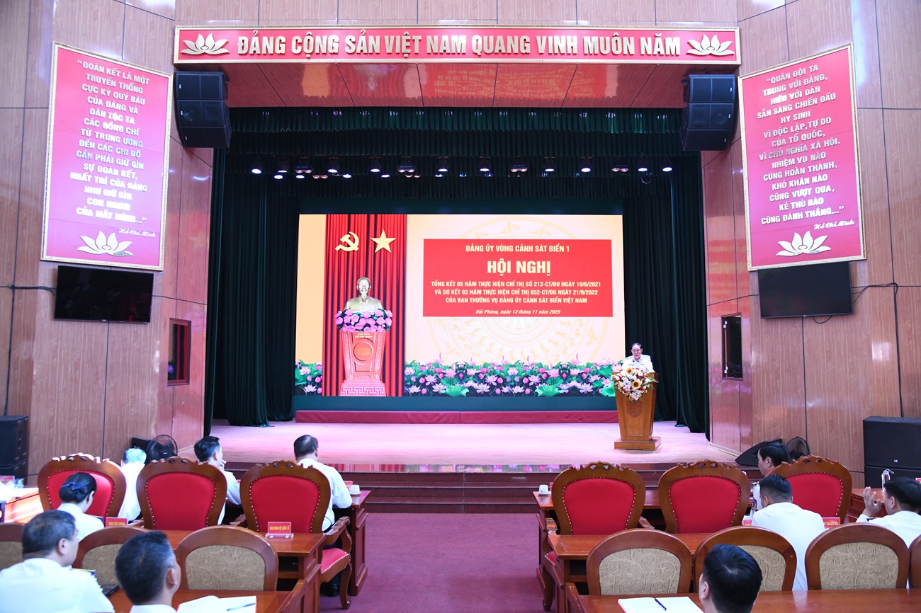Ngày 13/11, Bộ Tư lệnh Vùng Cảnh sát biển 1 tổ chức Hội nghị tổng kết 5 năm thực hiện Chỉ thị số 212-CT/ĐU ngày 10/6/2021 của Ban Thường vụ Đảng ủy Cảnh sát biển Việt Nam về tiếp tục đẩy mạnh phong trào “Bốn tốt, bốn không, bốn chống” và sơ kết 3 năm thực hiện Chỉ thị số 652-CT/ĐU ngày 21/9/2022 về tăng cường công tác quản lý tình hình tư tưởng, khắc phục tình trạng quân nhân xin ra quân, chuyển đơn vị công tác.