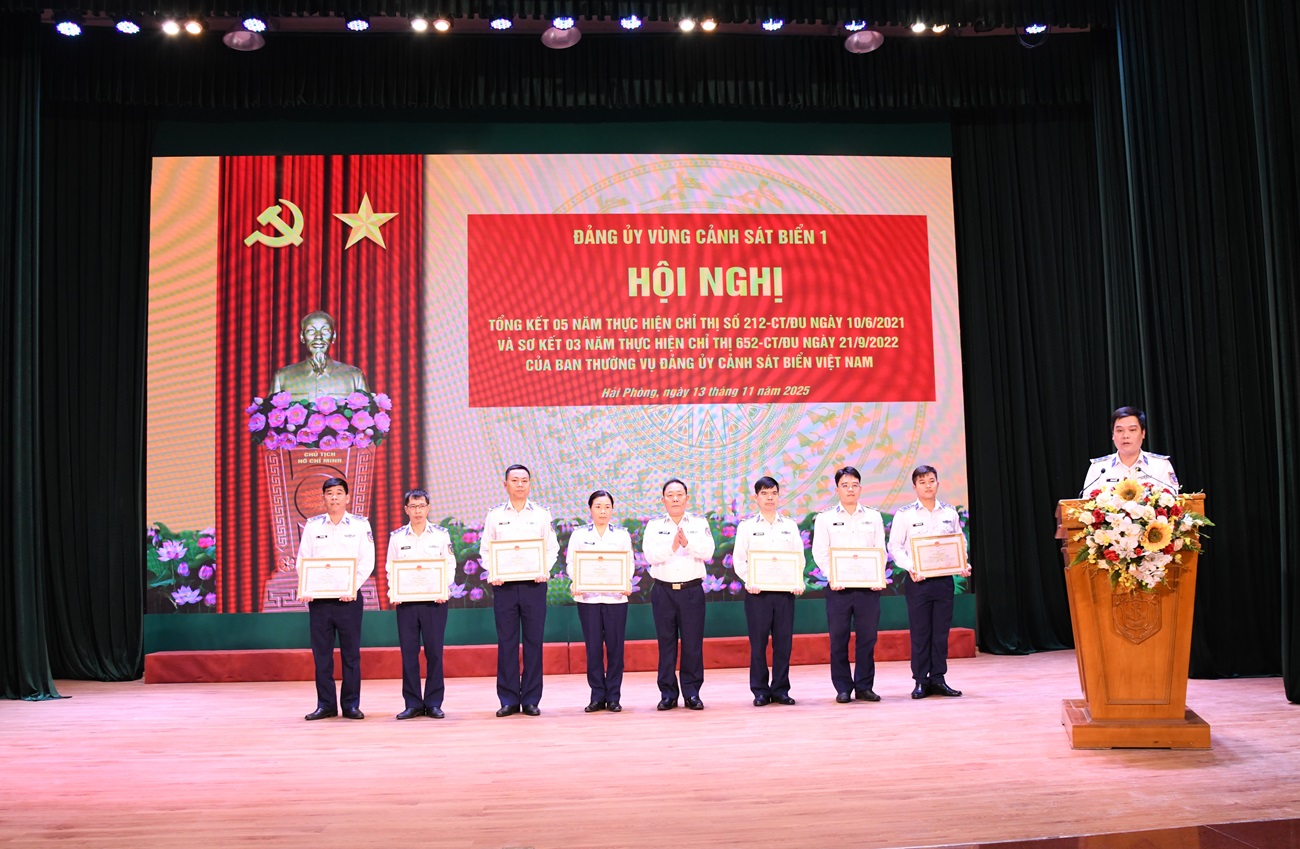 Tại Hội nghị, Bộ Tư lệnh Vùng Cảnh sát biển 1 đã biểu dương, khen thưởng nhiều tập thể, cá nhân có thành tích tiêu biểu trong thực hiện hai Chỉ thị, nhân rộng những cách làm hay, mô hình sáng tạo, góp phần lan tỏa phong trào thi đua trong toàn đơn vị.