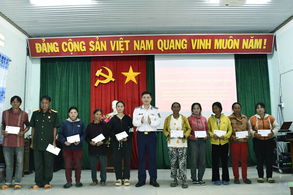 Trong không khí ấm áp, đoàn công tác đã trao 100 suất quà, cờ Tổ quốc tặng các hộ gia đình chính sách, hộ nghèo là đồng bào dân tộc thiểu số và ngư dân có hoàn cảnh khó khăn.