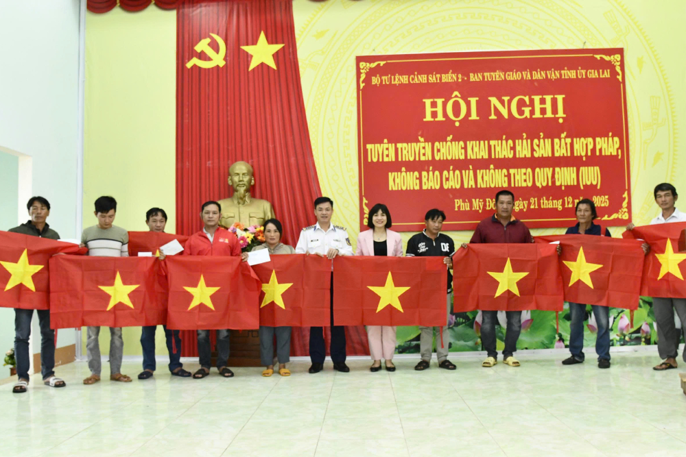 Tại tỉnh Gia Lai, trong các ngày 20 và 21/12, Đoàn công tác Bộ Tư lệnh Vùng Cảnh sát biển 2 do Đại tá Nguyễn Tiến Đức – Phó Chính ủy Bộ Tư lệnh Vùng Cảnh sát biển 2 làm trưởng đoàn đã phối hợp với Ban Tuyên giáo và Dân vận Tỉnh ủy Gia Lai đến thăm, tặng quà đồng bào xã Chơ Long và bà con ngư dân xã Phù Mỹ Đông. Đoàn đã gửi lời chúc Giáng sinh an lành tới đồng bào các tôn giáo; đồng thời tổ chức tuyên truyền chống khai thác hải sản bất hợp pháp, không báo cáo và không theo quy định (IUU) cho hơn 150 cán bộ, đảng viên và ngư dân địa phương.