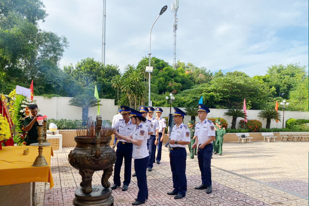 Đoàn công tác Bộ Tư lệnh Vùng Cảnh sát biển 3 dâng hương tại Đài tưởng niệm liệt sĩ cầu Cỏ May.