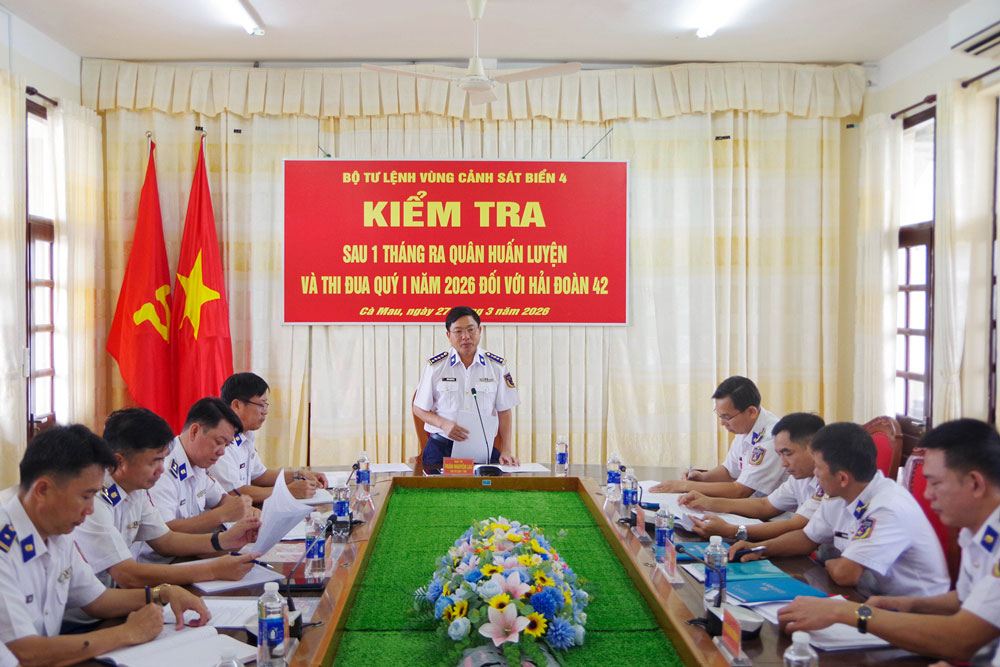 Trong hai ngày 27, 28/3, tại xã Năm Căn, tỉnh Cà Mau, Đoàn kiểm tra Bộ Tư lệnh Vùng Cảnh sát biển 4 do Đại tá Trần Nguyên Lai - Phó Tư lệnh, Tham mưu trưởng Bộ Tư lệnh Vùng làm trưởng đoàn đã đến kiểm tra toàn diện các mặt công tác sau một tháng huấn luyện tại Hải đoàn 42.