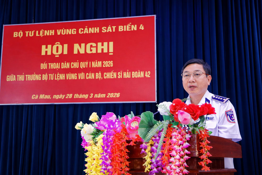 Cũng trong dịp này, Bộ Tư lệnh Vùng Cảnh sát biển 4 đã tổ chức Hội nghị đối thoại dân chủ quý I năm 2026 giữa Thủ trưởng Bộ Tư lệnh Vùng với cán bộ, chiến sĩ Hải đoàn 42. Hội nghị là dịp để thủ trưởng Bộ Tư lệnh Vùng trực tiếp lắng nghe tâm tư, nguyện vọng của cán bộ, chiến sĩ, kịp thời nắm bắt tình hình tư tưởng, những vướng mắc nảy sinh trong quá trình học tập, công tác, sinh hoạt tại đơn vị và hậu phương gia đình. Hội nghị diễn ra trong bầu không khí dân chủ, cởi mở, kịp thời giải đáp đầy đủ các ý kiến, kiến nghị của cán bộ, chiến sĩ trên các mặt công tác, tạo được sự đồng thuận, nhất trí cao. Từ đó giúp bộ đội phấn khởi, thêm yêu mến và gắn bó với đơn vị, quyết tâm thi đua hoàn thành thắng lợi mọi nhiệm vụ được giao.