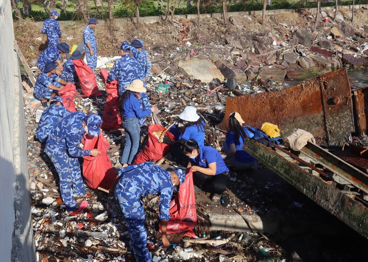 Tuổi trẻ Hải đội 401 phối hợp với Đoàn Đặc khu Phú Quốc ra quân "Ngày thứ 7 tình nguyện" tổng dọn vệ sinh môi trường biển.