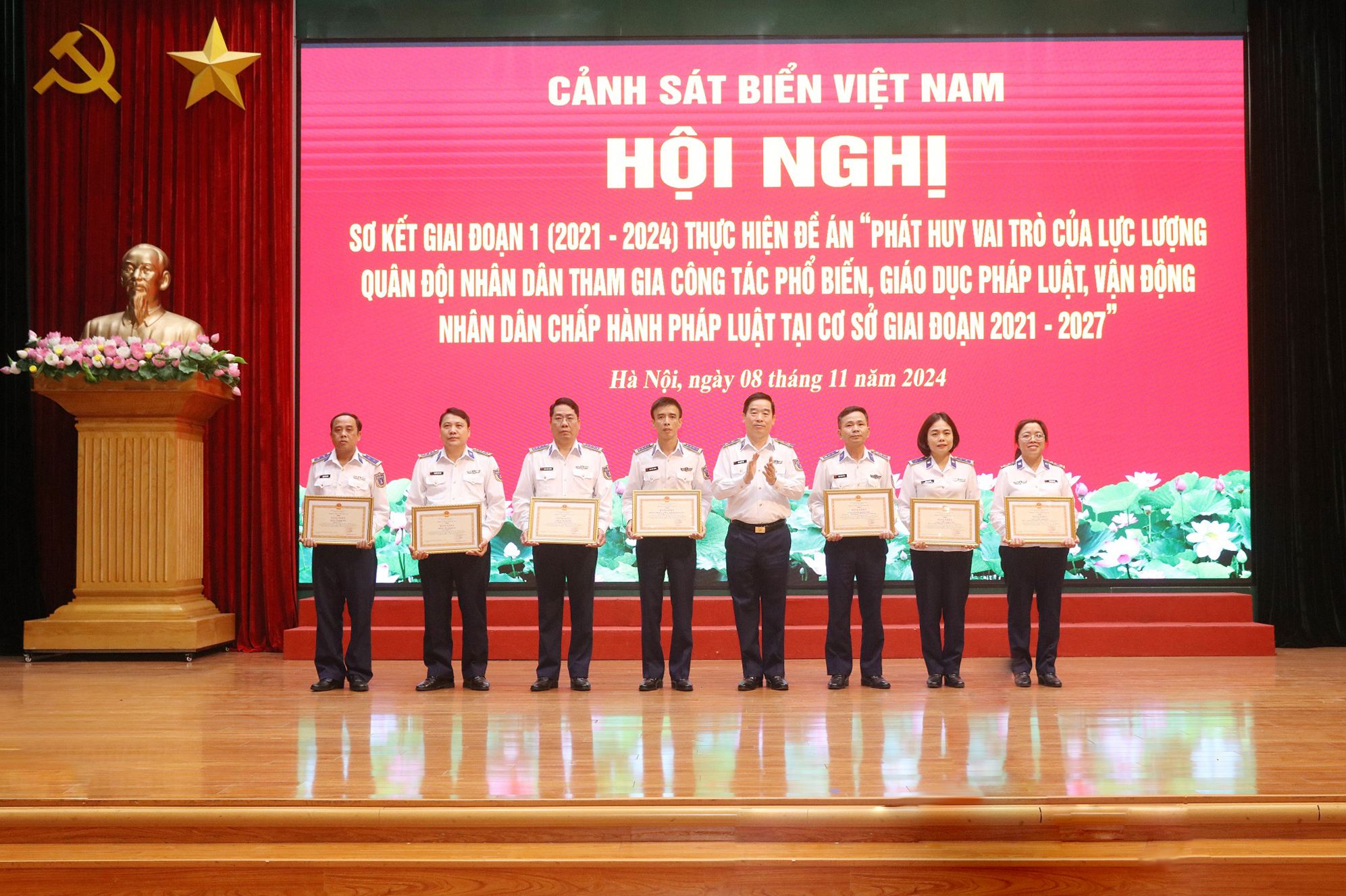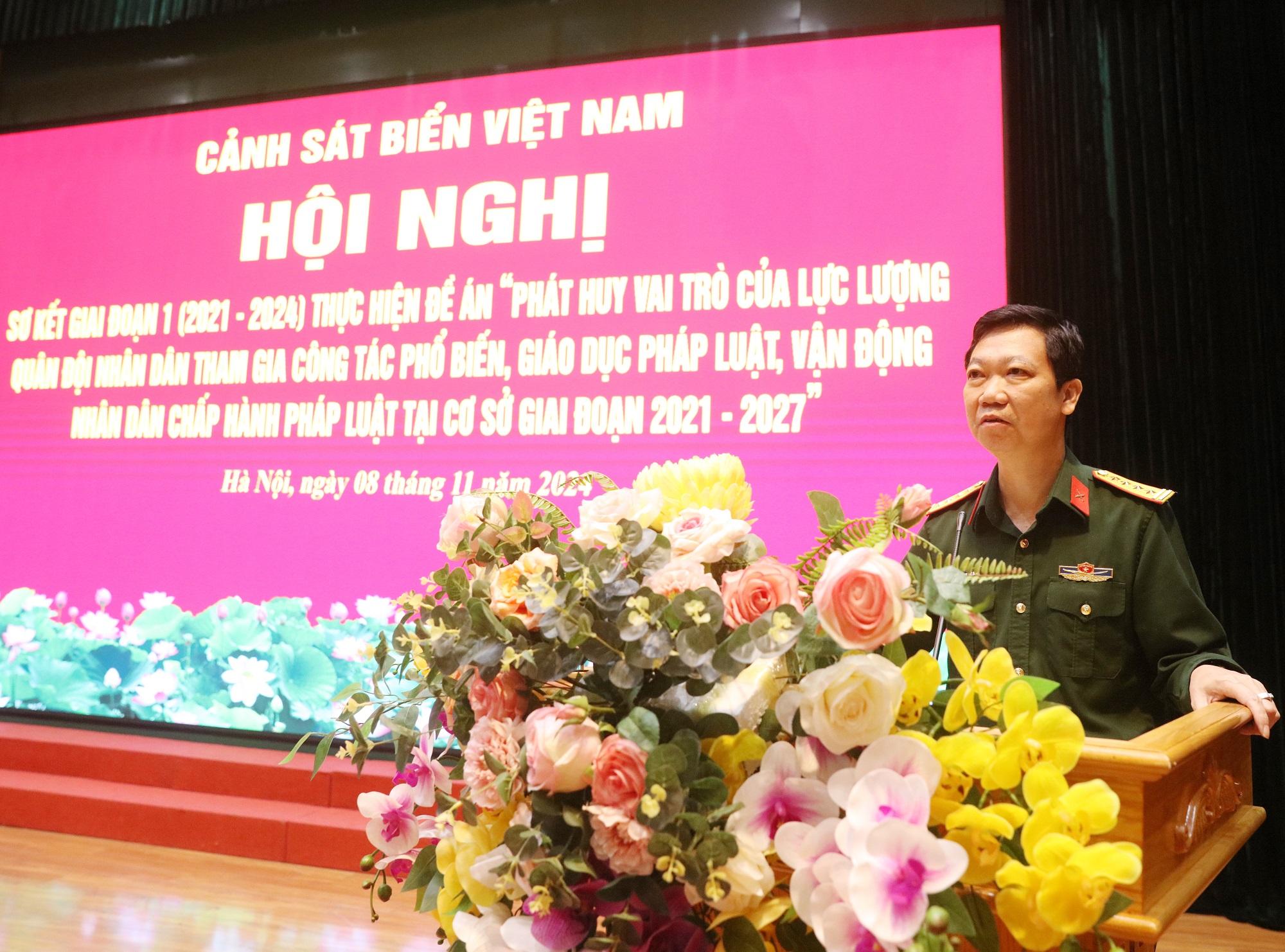 Ngày 8/11, tại Hà Nội, Cảnh sát biển Việt Nam tổ chức Hội nghị sơ kết giai đoạn 1 thực hiện Đề án "Phát huy vai trò của lực lượng Quân đội nhân dân tham gia công tác phổ biến, giáo dục pháp luật, vận động nhân dân chấp hành pháp luật tại cơ sở giai đoạn 2021 - 2027" (gọi tắt là Đề án 1371) theo hình thức trực tiếp kết hợp trực tuyến đến các điểm cầu trong toàn Lực lượng. Trung tướng Bùi Quốc Oai - Chính ủy Cảnh sát biển Việt Nam chủ trì Hội nghị.