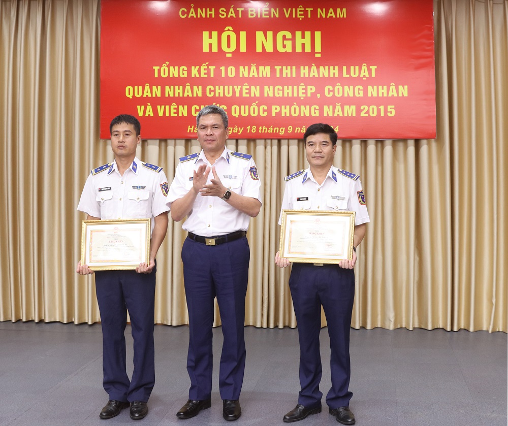 Tại Hội nghị, đồng chí Phó Tư lệnh, Tham mưu trưởng đã trao tặng Bằng khen của Cảnh sát biển Việt Nam cho các tập thể và cá nhân có thành tích xuất sắc trong thực hiện Luật Quân nhân chuyên nghiệp, công nhân và viên chức quốc phòng năm 2015.