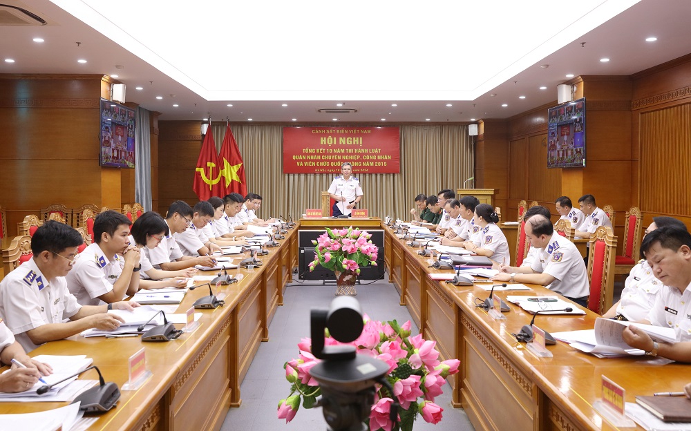 Sáng 18/9, tại Hà Nội, Cảnh sát biển Việt Nam tổ chức Hội nghị tổng kết 10 năm thi hành Luật Quân nhân chuyên nghiệp, công nhân và viên chức quốc phòng năm 2015 theo hình thức trực tiếp kết hợp trực tuyến đến 11 điểm cầu trong toàn Lực lượng. Thiếu tướng Lê Đình Cường - Phó Tư lệnh, Tham mưu trưởng Cảnh sát biển Việt Nam chủ trì Hội nghị.