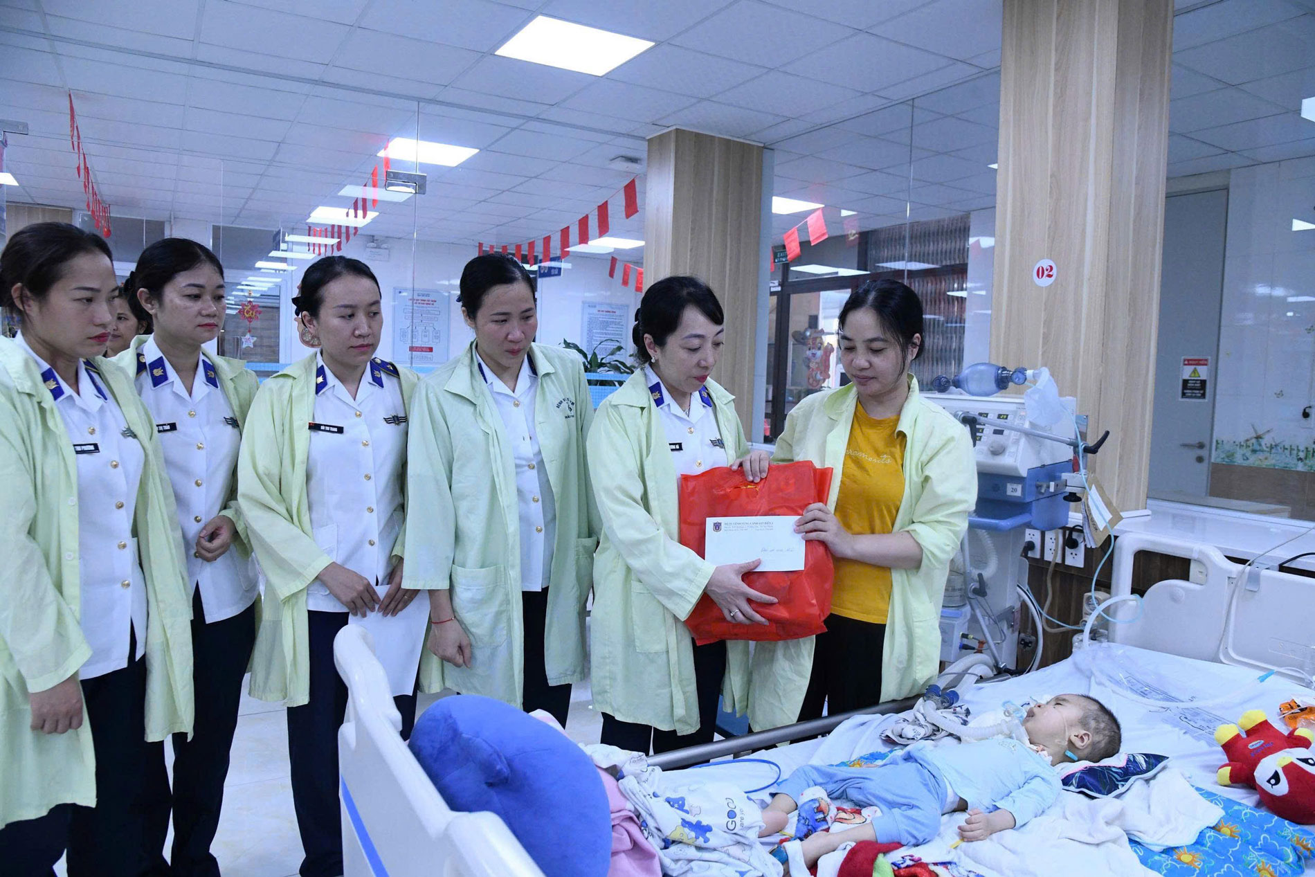 Phụ nữ Bộ Tư lệnh Vùng Cảnh sát biển 1 tặng quà các cháu nhỏ mắc bệnh hiểm nghèo, có hoàn cảnh khó khăn đang điều trị tại Bệnh viện Nhi Hải Phòng.
