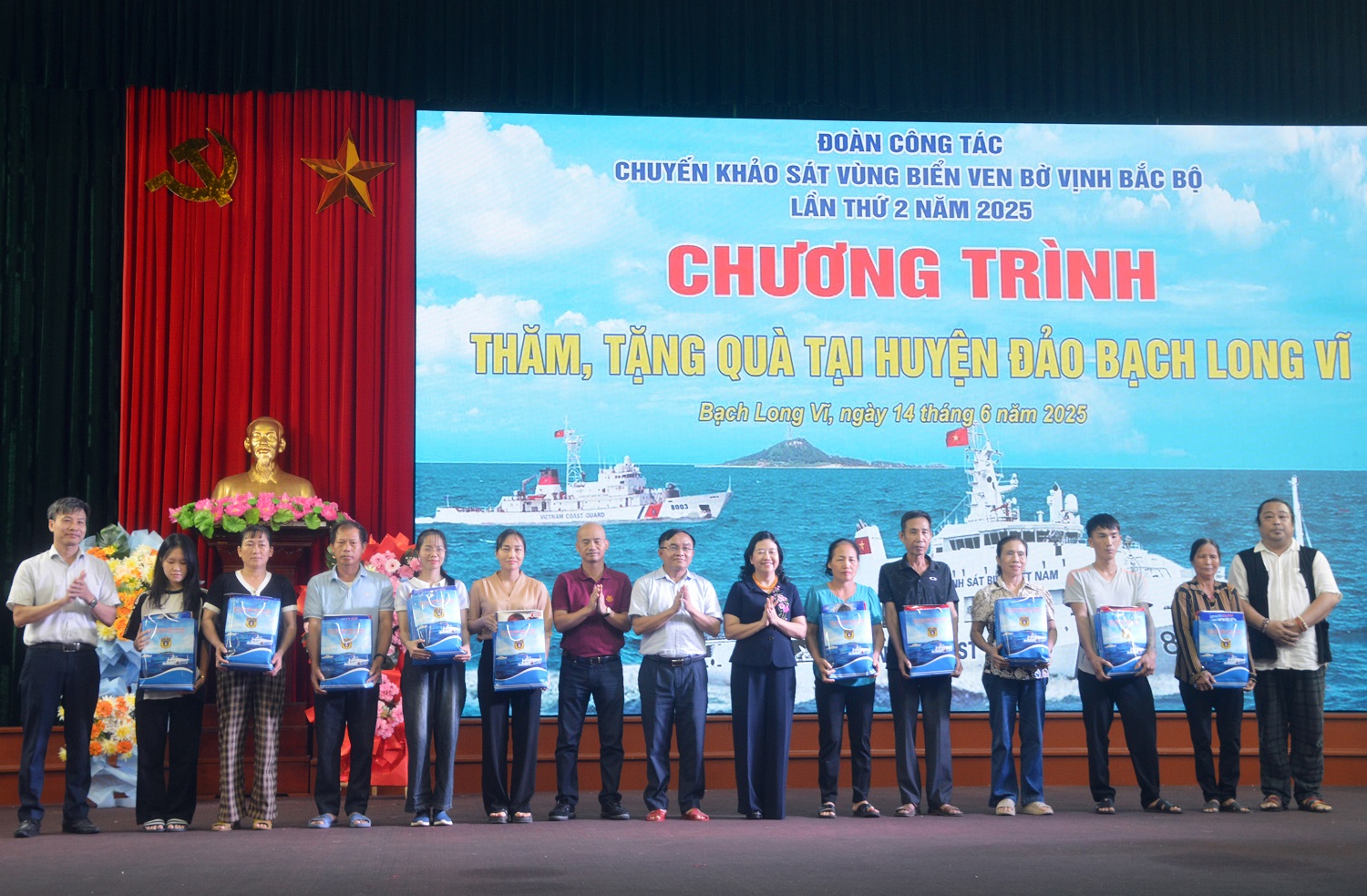 Trong 4 ngày, từ 12 đến 15/6, tàu CSB 8004/Hải đoàn 11/Bộ Tư lệnh Vùng Cảnh sát biển 1 chở Đoàn công tác Cảnh sát biển Việt Nam cùng đại biểu Ban Tuyên giáo và Dân vận các địa phương Hải Phòng, Ninh Bình, Nghệ An, các cơ quan, doanh nghiệp thực hiện chuyến khảo sát, nắm tình hình các vùng biển, đảo ven bờ, chuyến số 2 năm 2025.