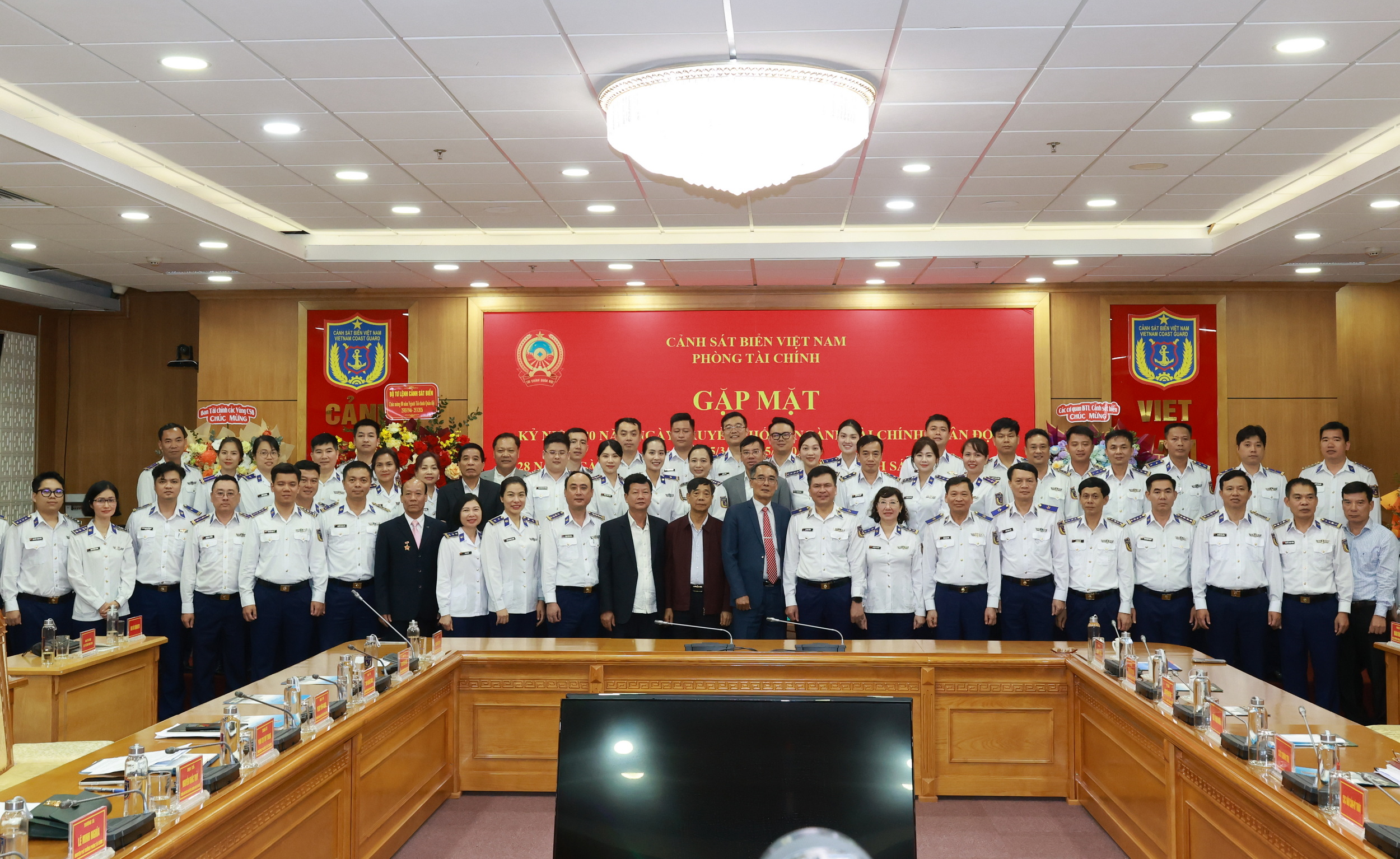 Thủ trưởng Bộ Tư lệnh Cảnh sát biển chụp ảnh lưu niệm cùng càn bộ, nhân viên Phòng Tài chính Cảnh sát biển qua các thời kỳ.