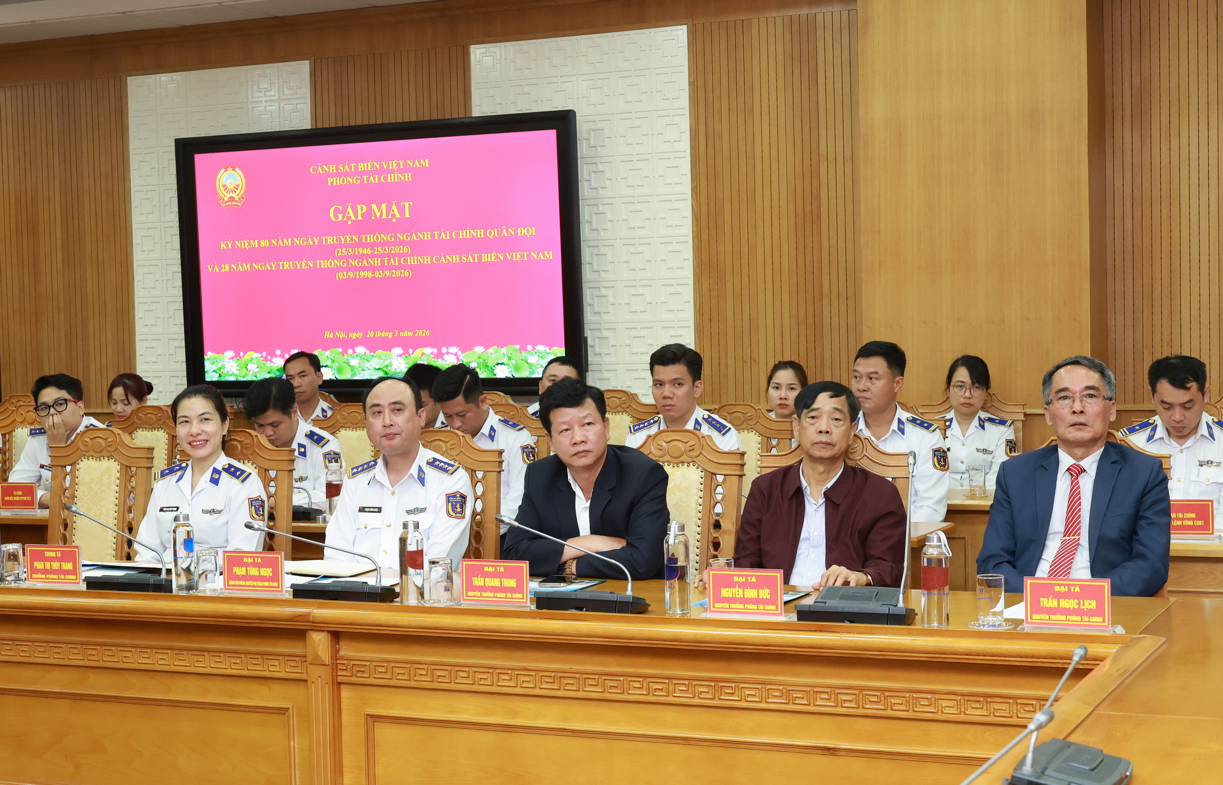 Ngày 20/3, Cảnh sát biển Việt Nam tổ chức Gặp mặt kỷ niệm 80 năm Ngày truyền thống Ngành Tài chính Quân đội nhân dân Việt Nam (25/3/1946 – 25/3/2026). Thiếu tướng Lê Đình Cường - Tư lệnh Cảnh sát biển Việt Nam dự và chỉ đạo buổi gặp mặt.