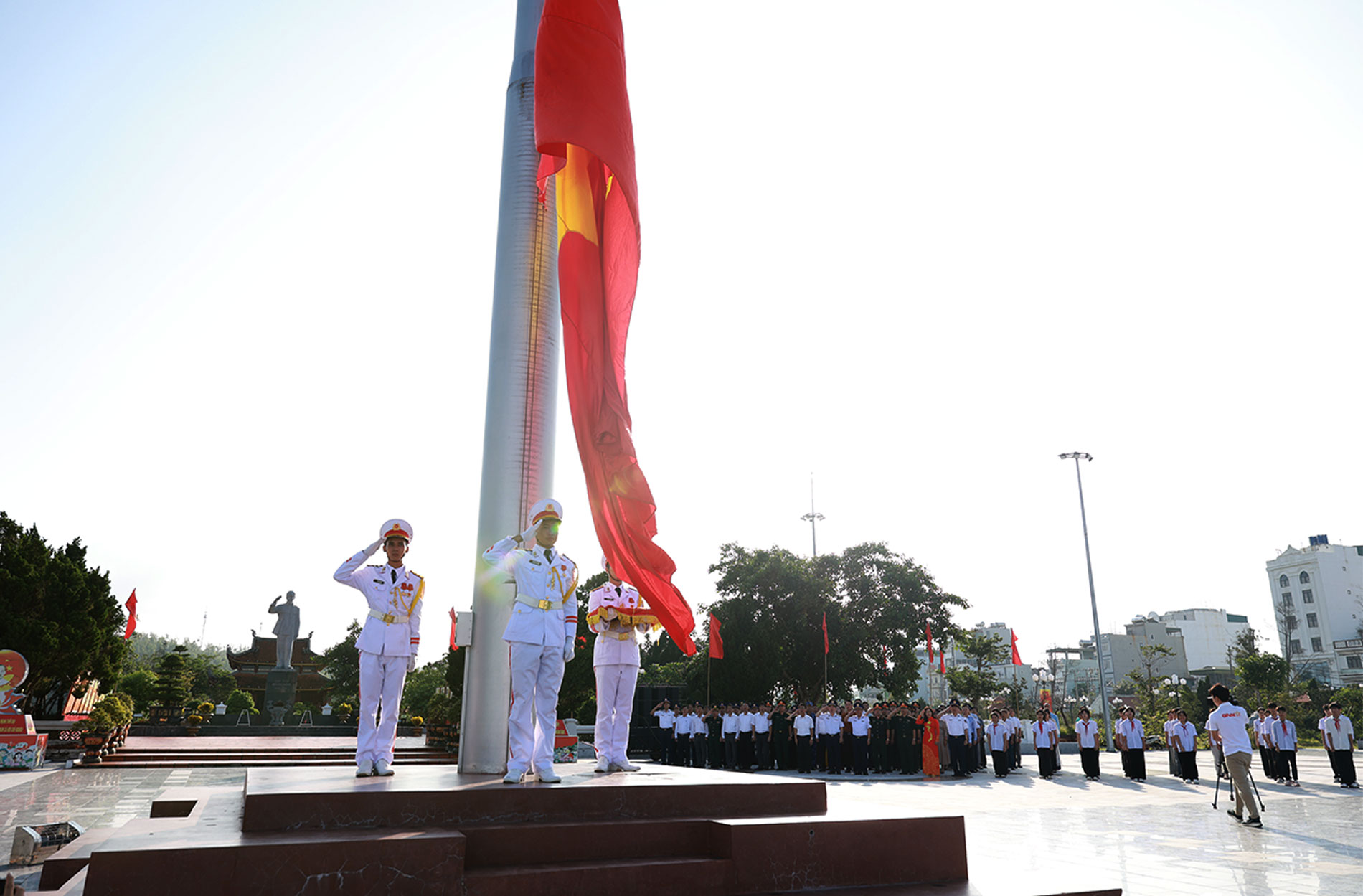 Đoàn đại biểu thực hiện nghi lễ chào cờ tại Quảng trường Đặc khu Cô Tô.
