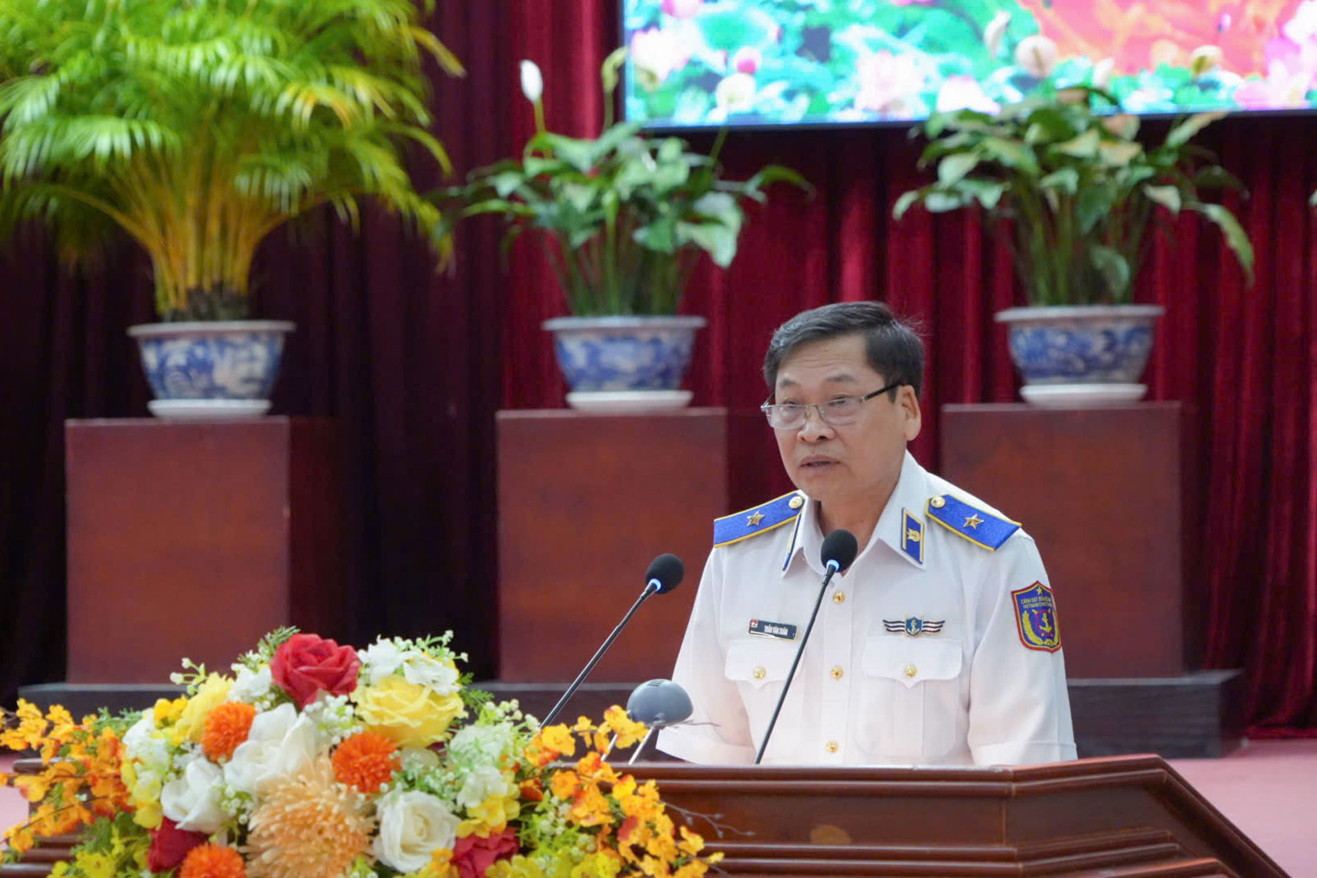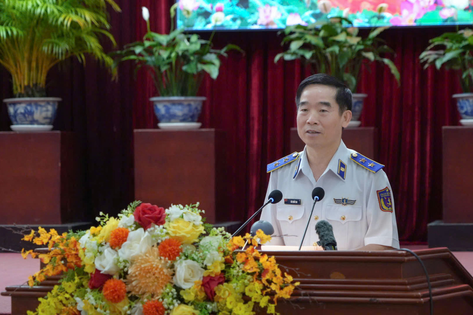 Trung tướng Bùi Quốc Oai - Bí thư Đảng ủy, Chính ủy Cảnh sát biển Việt Nam phát biểu tại Hội nghị.
