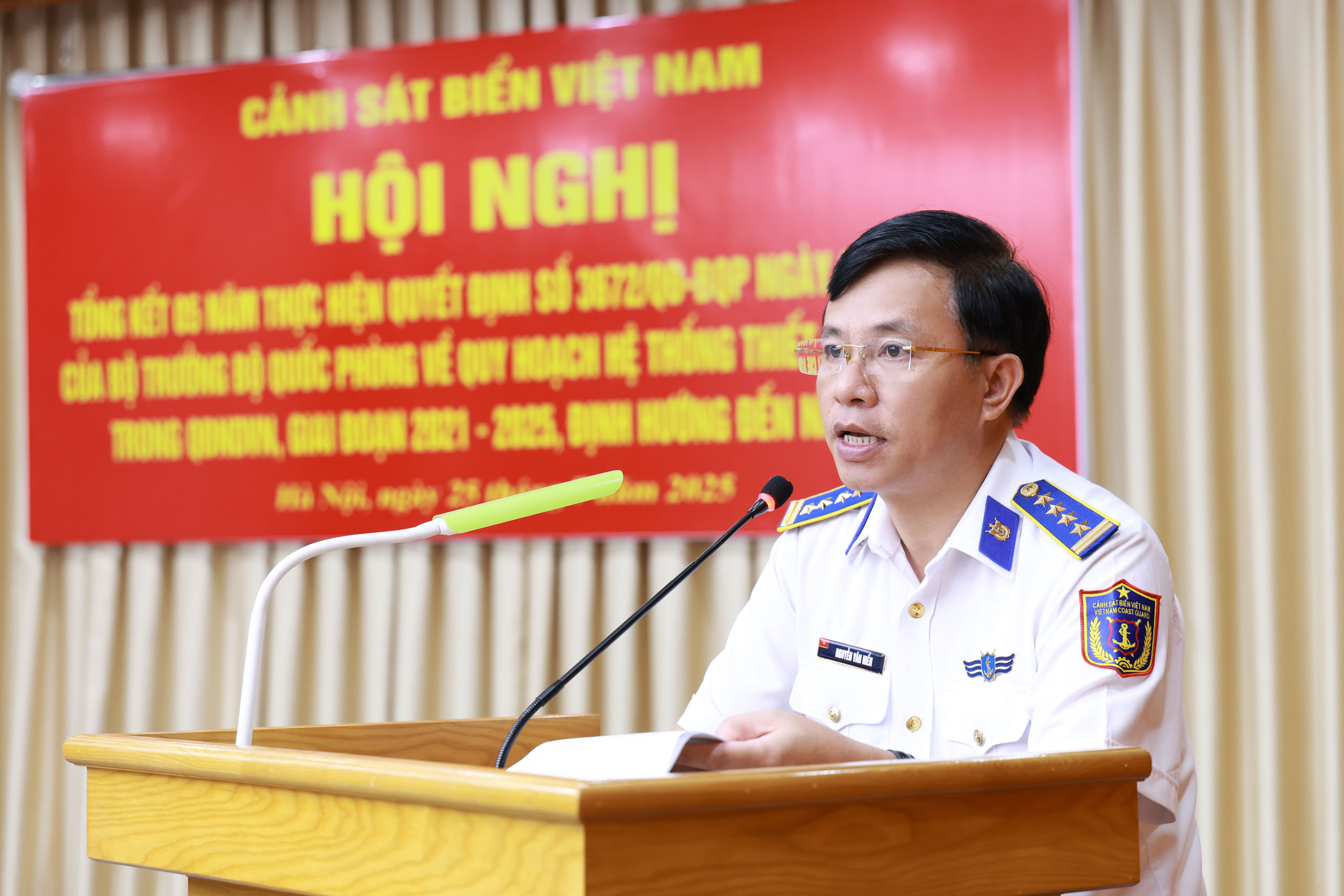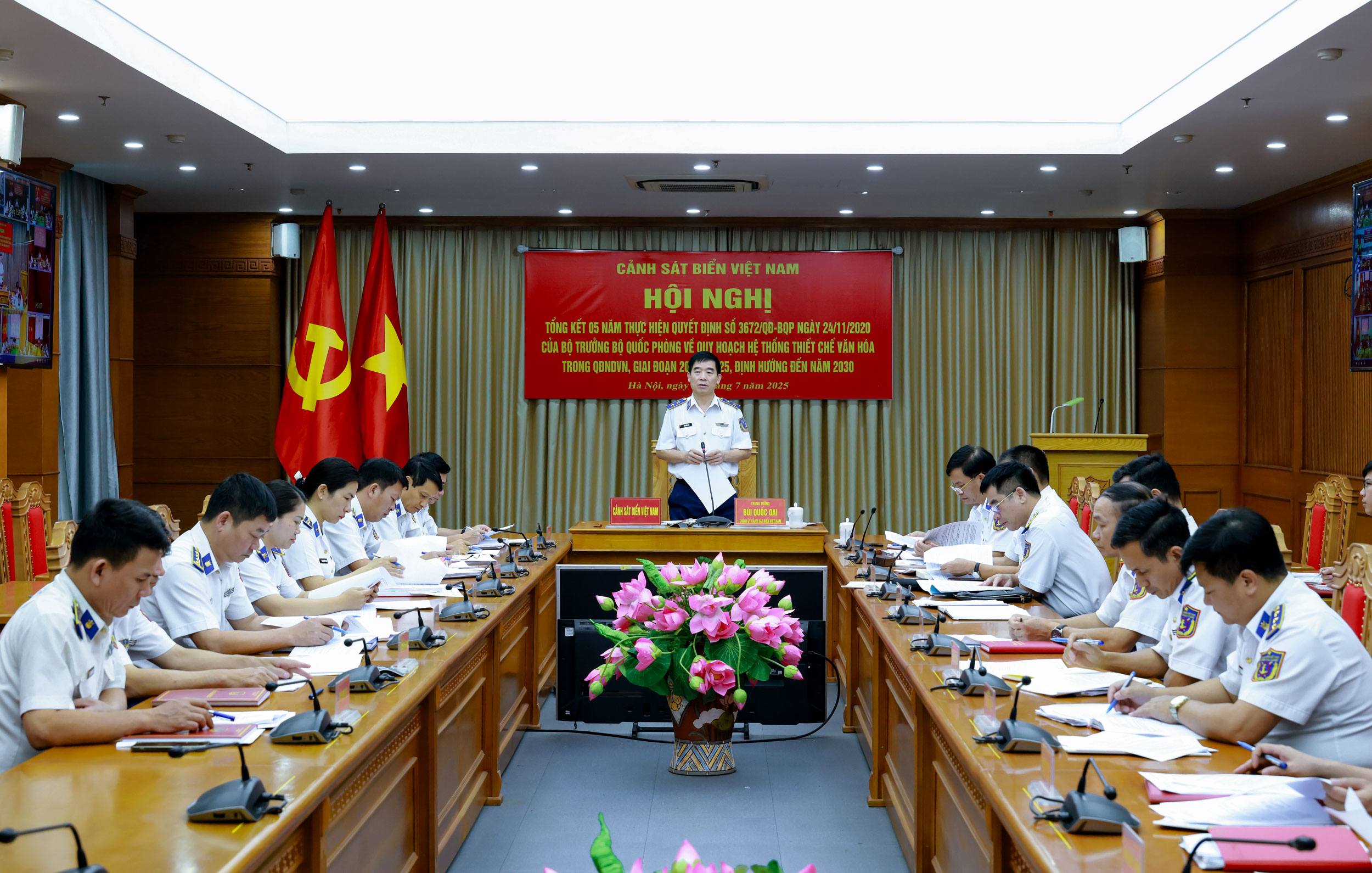 Chiều 25/7, Cảnh sát biển Việt Nam tổ chức Hội nghị tổng kết 5 năm thực hiện Quy hoạch hệ thống thiết chế văn hóa trong Quân đội nhân dân Việt Nam giai đoạn 2021-2025, định hướng đến năm 2030. Trung tướng Bùi Quốc Oai – Chính ủy Cảnh sát biển Việt Nam chủ trì hội nghị. Hội nghị được tổ chức trực tiếp kết hợp trực tuyến đến 11 điểm cầu trong toàn Lực lượng.