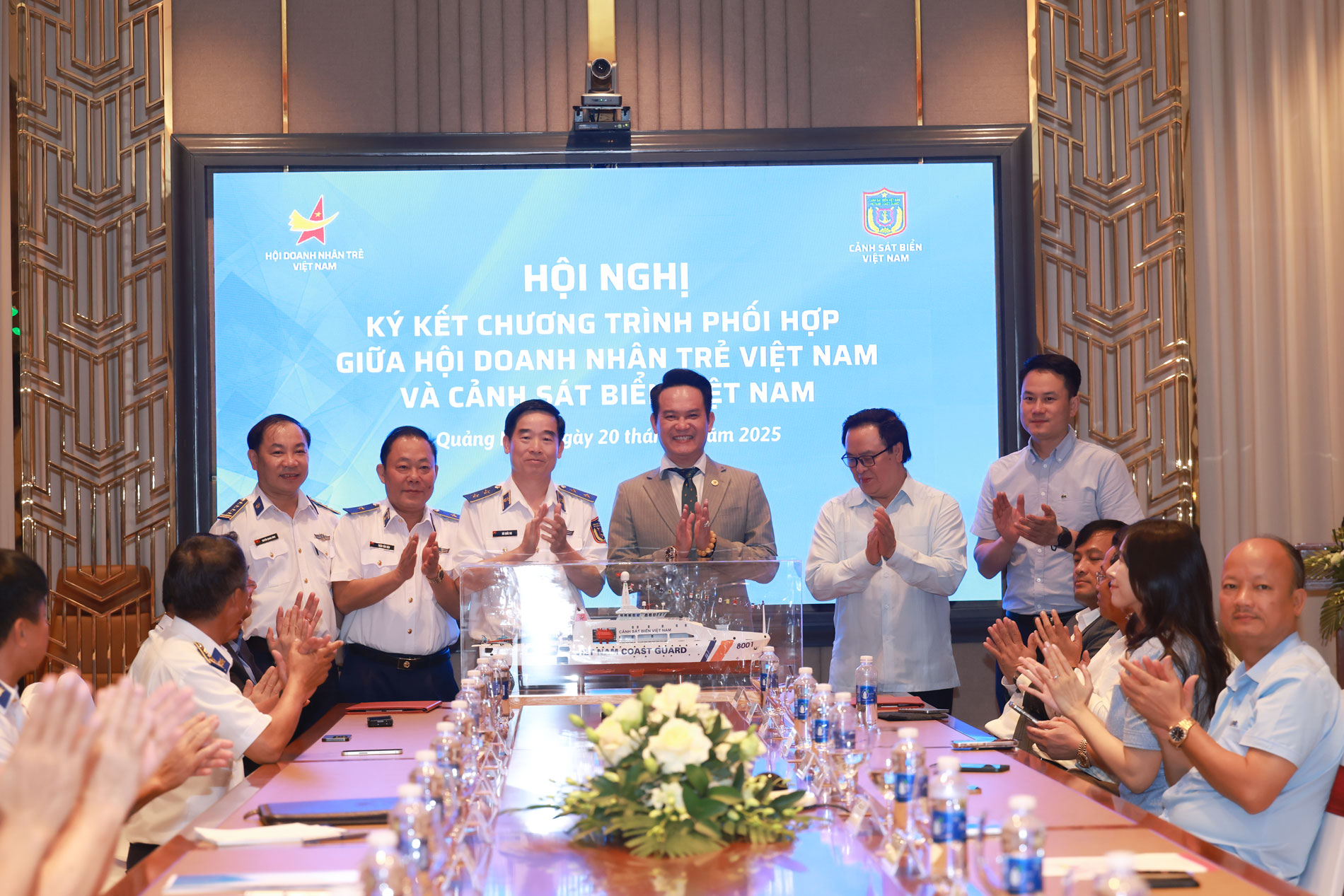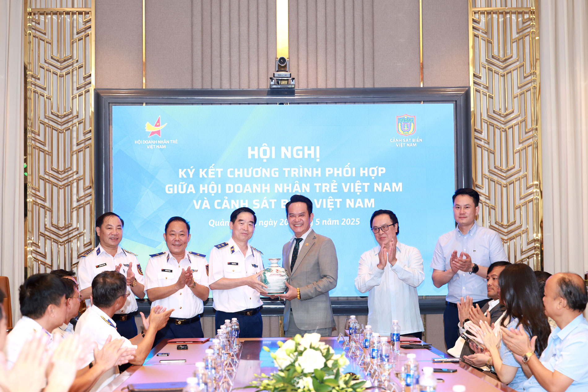 Chương trình phối hợp giữa Cảnh sát biển Việt Nam và Hội Doanh nhân trẻ Việt Nam có thời hạn trong 3 năm (2025-2028) tập trung vào những nội dung chính sau: Tăng cường công tác tuyên truyền, giáo dục về biển đảo, nâng cao ý thức trách nhiệm của doanh nhân trẻ trong việc bảo vệ chủ quyền, an ninh, an toàn biển đảo Tổ quốc; huy động nguồn lực xã hội hóa từ cộng đồng doanh nhân trẻ để hỗ trợ ngư dân bám biển, hỗ trợ cán bộ, chiến sĩ Cảnh sát biển đang thực hiện nhiệm vụ nơi tuyến đầu; phối hợp triển khai các chương trình an sinh xã hội, hỗ trợ khởi nghiệp, phát triển kinh tế tại các khu vực ven biển, đảo xa bờ, góp phần củng cố thế trận quốc phòng toàn dân và thế trận an ninh nhân dân trên biển; xây dựng các mô hình liên kết bền vững trong công tác bảo vệ môi trường biển, phát triển kinh tế biển xanh và trách nhiệm xã hội doanh nghiệp….