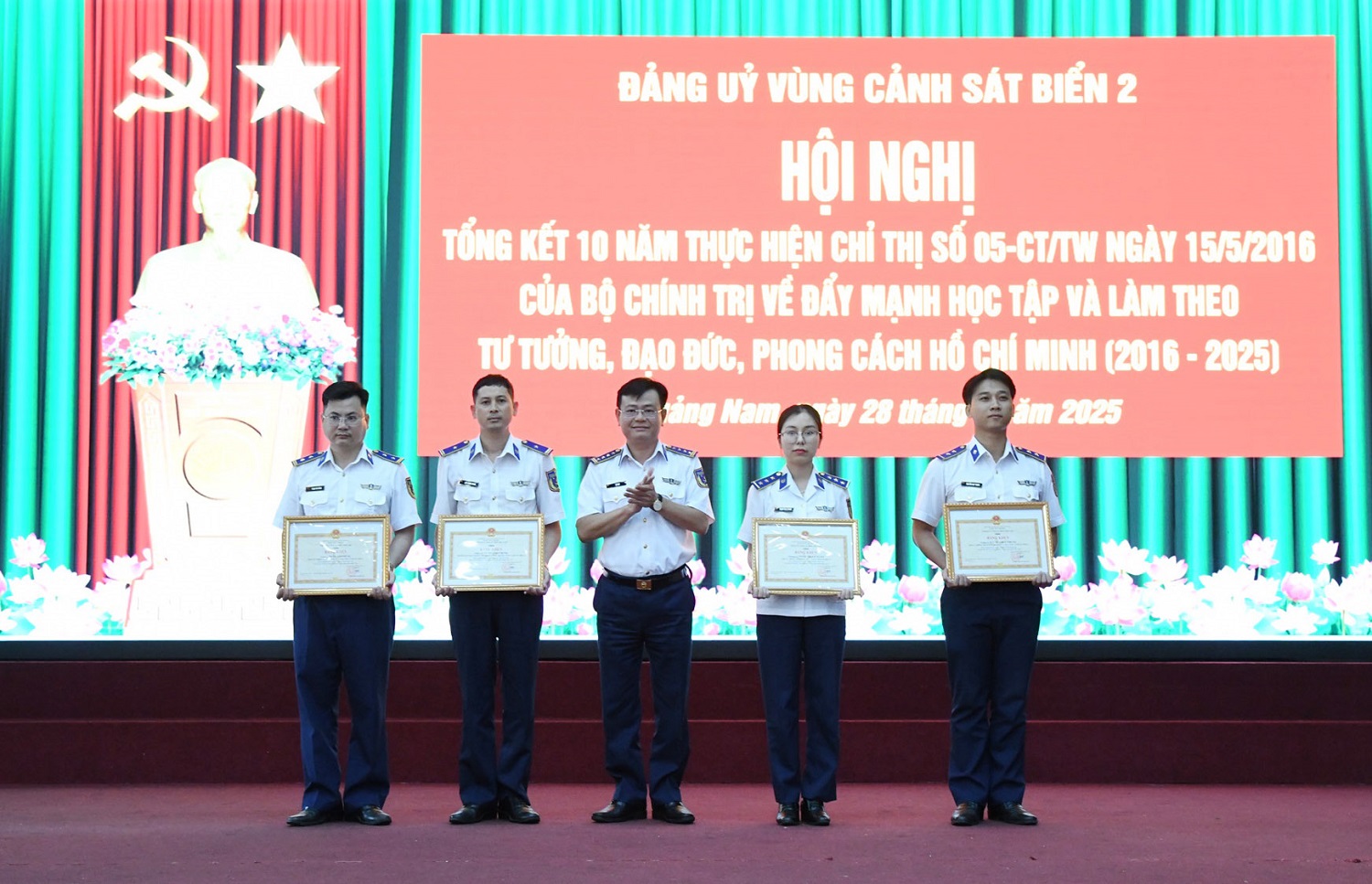 Nhân dịp này, Đảng ủy, chỉ huy các đơn vị Cảnh sát biển đã tặng thưởng cho các tập thể và cá nhân có thành tích xuất sắc trong 10 năm thực hiện Chỉ thị số 05-CT/TW của Bộ Chính trị về đẩy mạnh học tập và làm theo tư tưởng, đạo đức, phong cách Hồ Chí Minh, giai đoạn 2016 - 2025.