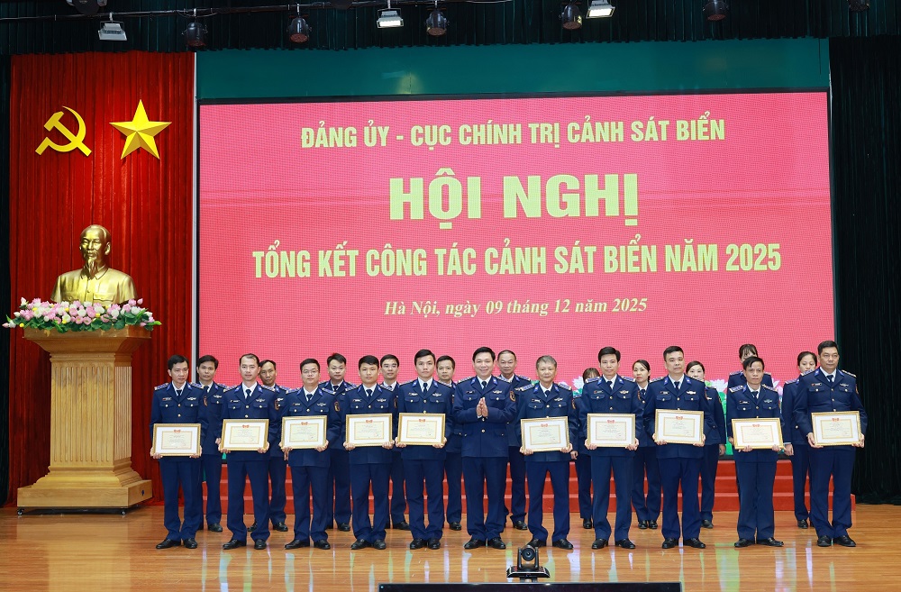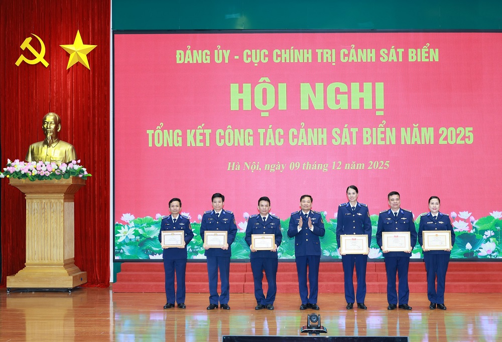 Dịp này, Đảng ủy, Thủ trưởng Cục Chính trị Cảnh sát biển Việt Nam đã khen thưởng các tập thể, cá nhân đạt thành tích tốt và xuất sắc trong thực hiện nhiệm vụ năm 2025.