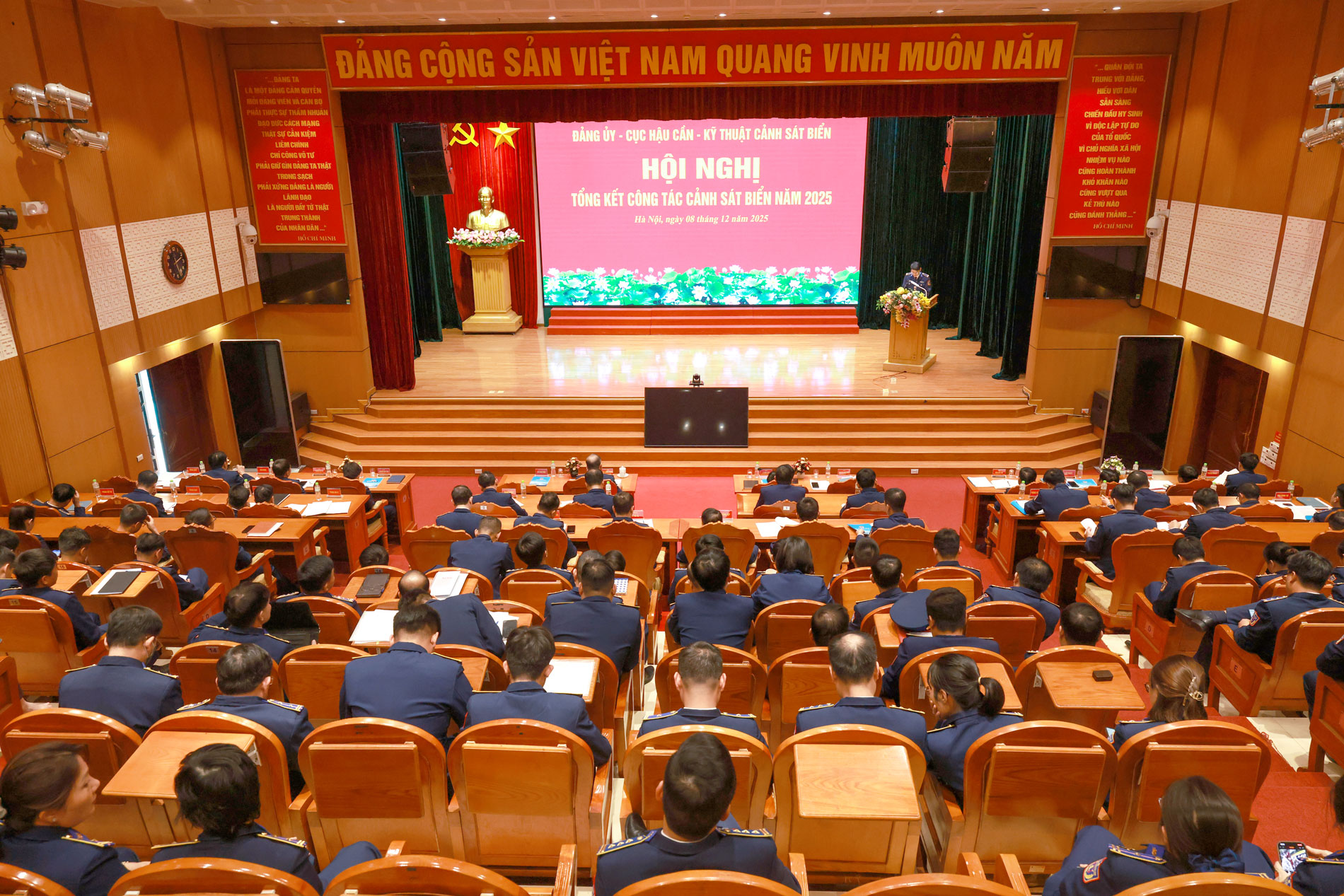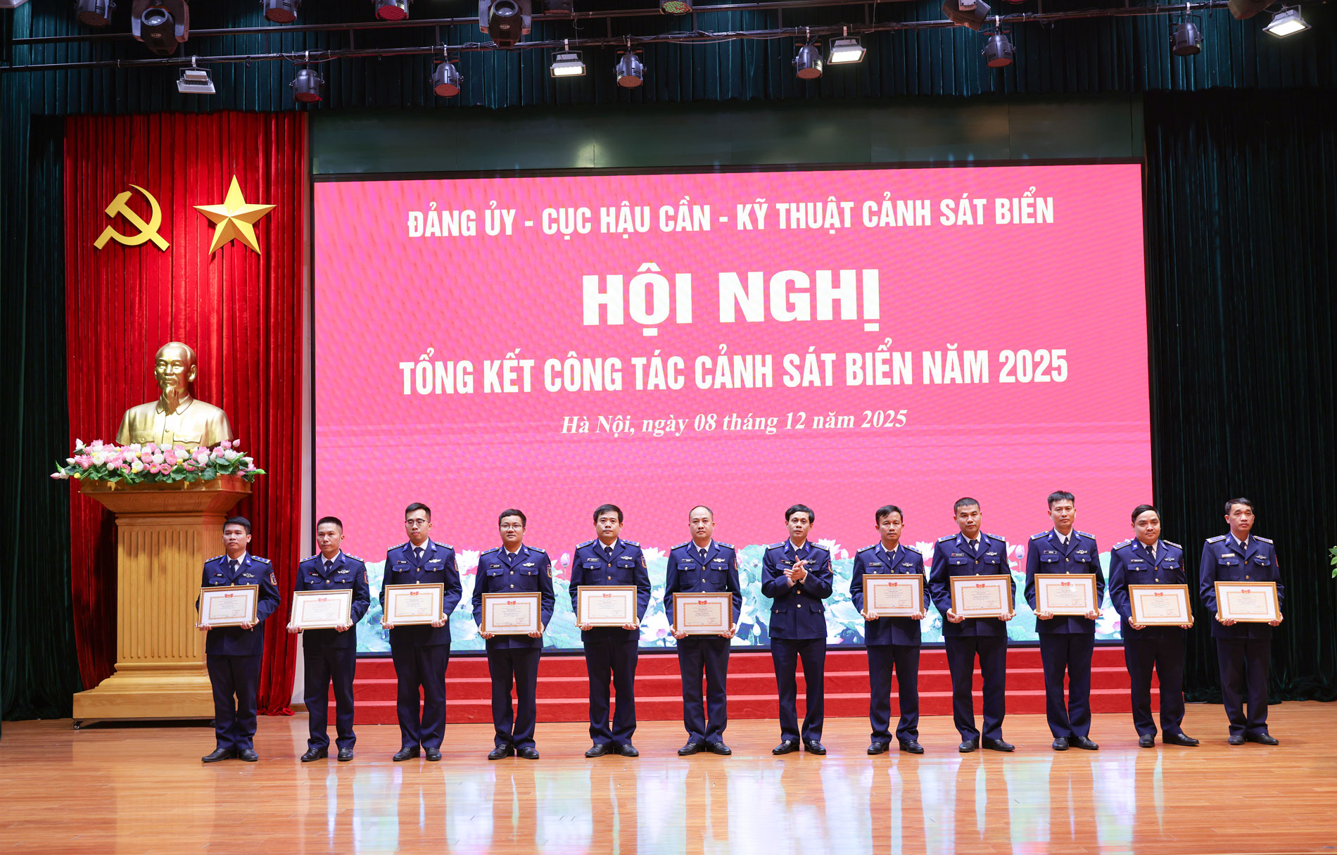 Chiều 8/12 , Cục Hậu cần - Kỹ thuật Cảnh sát biển Việt Nam tổ chức Hội nghị Tổng kết công tác Cảnh sát biển năm 2025. Thiếu tướng Đàm Xuân Tuấn - Phó Tư lệnh Cảnh sát biển dự và phát biểu chỉ đạo. Đại tá Lê Đông Thùy - Bí thư Đảng ủy, Phó Cục trưởng Cục Hậu cần - Kỹ thuật chủ trì Hội nghị.