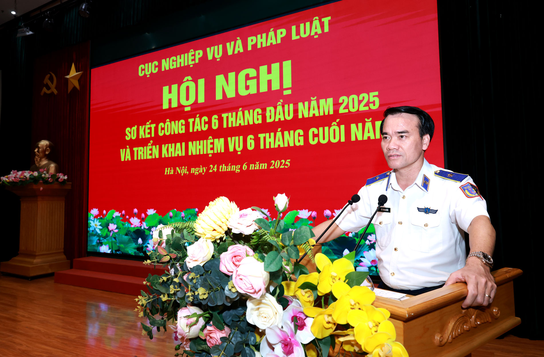 Phát biểu chỉ đạo hội nghị, Thiếu tướng Vũ Trung Kiên ghi nhận và biểu dương những kết quả, nỗ lực phấn đấu trong thời gian qua của cán bộ, nhân viên Cục Nghiệp vụ và Pháp luật Cảnh sát biển. Thời gian tới, đồng chí Phó Tư lệnh Pháp luật Cảnh sát biển Việt Nam đề nghị Đảng ủy, Thủ trưởng Cục và các phòng, ban tiếp tục quán triệt, triển khai toàn diện các mặt công tác nghiệp vụ pháp luật; thực hiện tốt khâu đột phá năm 2025 “Nắm chắc tình hình; đổi mới, nâng cao chất lượng công tác tham mưu trong duy trì, thực thi pháp luật; chủ động đấu tranh hiệu quả với tội phạm, vi phạm pháp luật; công tác hồ sơ chính quy, khoa học” hoàn thành và vượt chỉ tiêu đề ra.