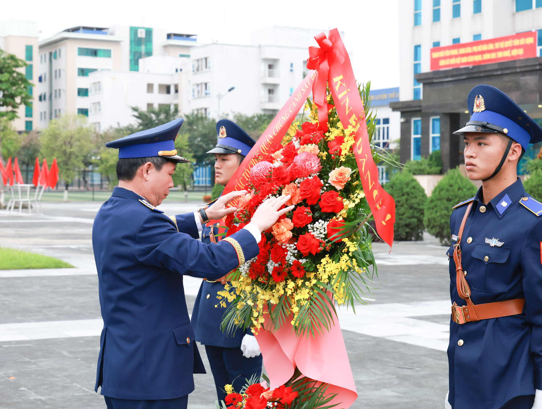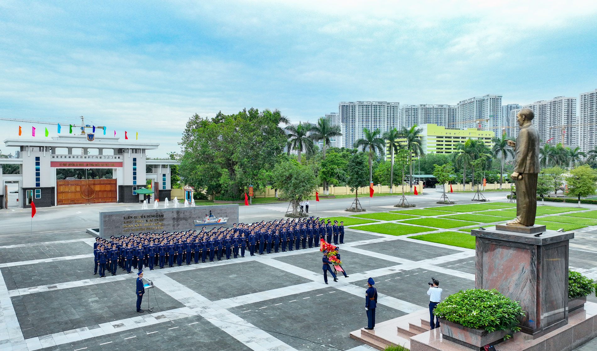 Trước Tượng đài Chủ tịch Hồ Chí Minh trong khuôn viên trụ sở cơ quan Bộ Tư lệnh Cảnh sát biển, Đoàn đại biểu đã thành kính dâng lẵng hoa tươi thắm, báo công dâng Bác và bày tỏ lòng biết ơn sâu sắc đối với công lao to lớn của Người - vị lãnh tụ thiên tài của Đảng và cách mạng Việt Nam, người cha thân yêu của các lực lượng vũ trang nhân dân, Người đã trọn đời phấn đấu hi sinh vì độc lập, tự do cho Tổ quốc và hạnh phúc của nhân dân.