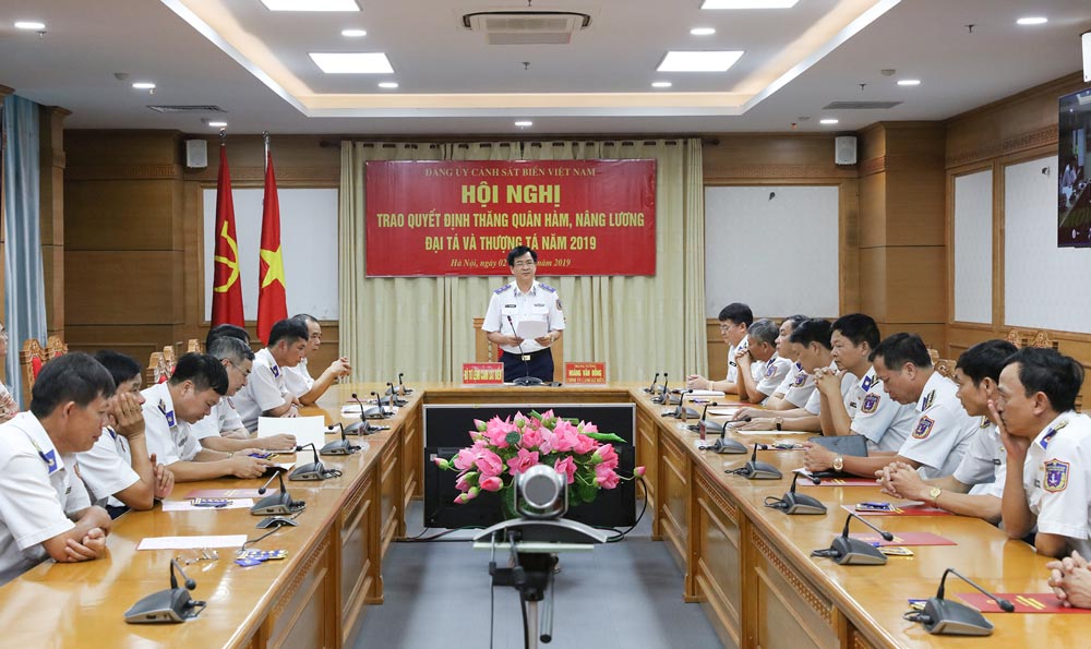 Hội nghị nhằm triển khai kịp thời các quyết định nâng lương đại tá và thượng tá của Bộ trưởng Bộ Quốc phòng cho cán bộ, chỉ huy, quản lý các cơ quan, đơn vị trực thuộc và cán bộ khối cơ quan Bộ Tư lệnh Cảnh sát biển năm 2019. Trong đợt trao quyết định này, Bộ Tư lệnh Cảnh sát biển có 3 đồng chí được nâng lương đại tá lần 2; 12 đồng chí nâng lương đại tá lần 1 và 2 đồng chí nâng lương thượng tá lần 1.