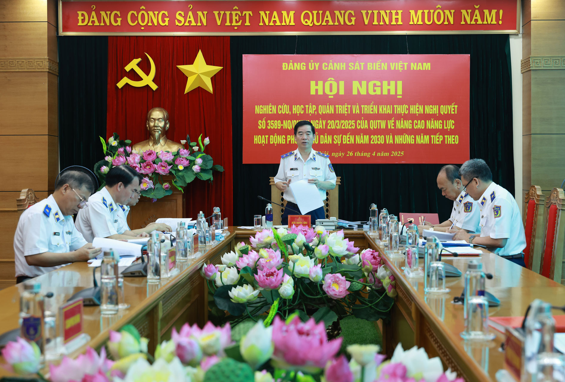 Ngày 26/4, Đảng ủy Cảnh sát biển Việt Nam tổ chức Hội nghị nghiên cứu, học tập, quán triệt và triển khai Nghị quyết số 3589-NQ/QUTW ngày 20/3/2025 của Quân ủy Trung ương về nâng cao năng lực hoạt động phòng thủ dân sự đến năm 2030 và những năm tiếp theo. Trung tướng Bùi Quốc Oai - Bí thư Đảng ủy, Chính ủy Cảnh sát biển Việt Nam chủ trì Hội nghị.