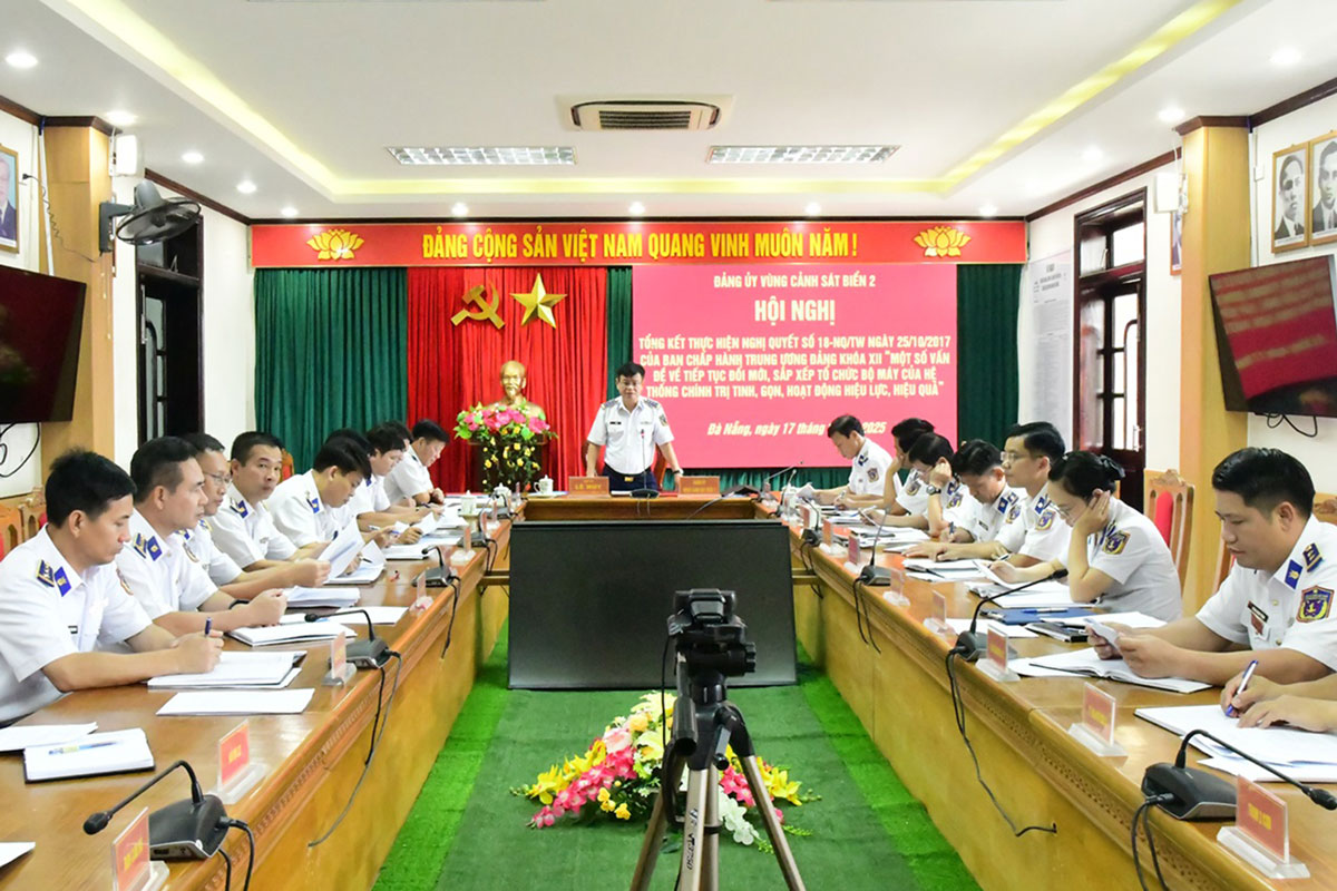 Ngày 17/9, tại xã Núi Thành, Tp. Đà Nẵng, Đảng ủy Vùng Cảnh sát biển 2 tổ chức Hội nghị tổng kết thực hiện Nghị quyết số 18-NQ/TW ngày 25/10/2017 của Ban Chấp hành Trung ương Đảng khóa XII về “Một số vấn đề về tiếp tục đổi mới, sắp xếp tổ chức bộ máy của hệ thống chính trị tinh gọn, hoạt động hiệu lực, hiệu quả”. Đại tá Lê Huy - Bí thư Đảng ủy, Chính ủy Bộ Tư lệnh Vùng Cảnh sát biển 2 chủ trì Hội nghị.