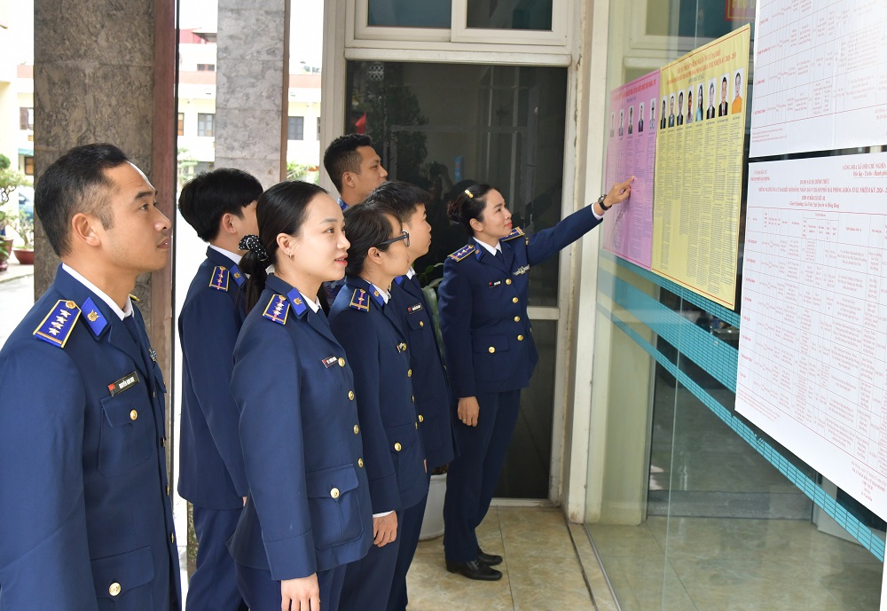 Cán bộ, chiến sĩ đơn vị tìm hiểu thông tin người ứng cử Đại biểu Quốc hội khóa XVI và đại biểu HĐND thành phố Hải Phòng nhiệm kỳ 2026 - 2031.