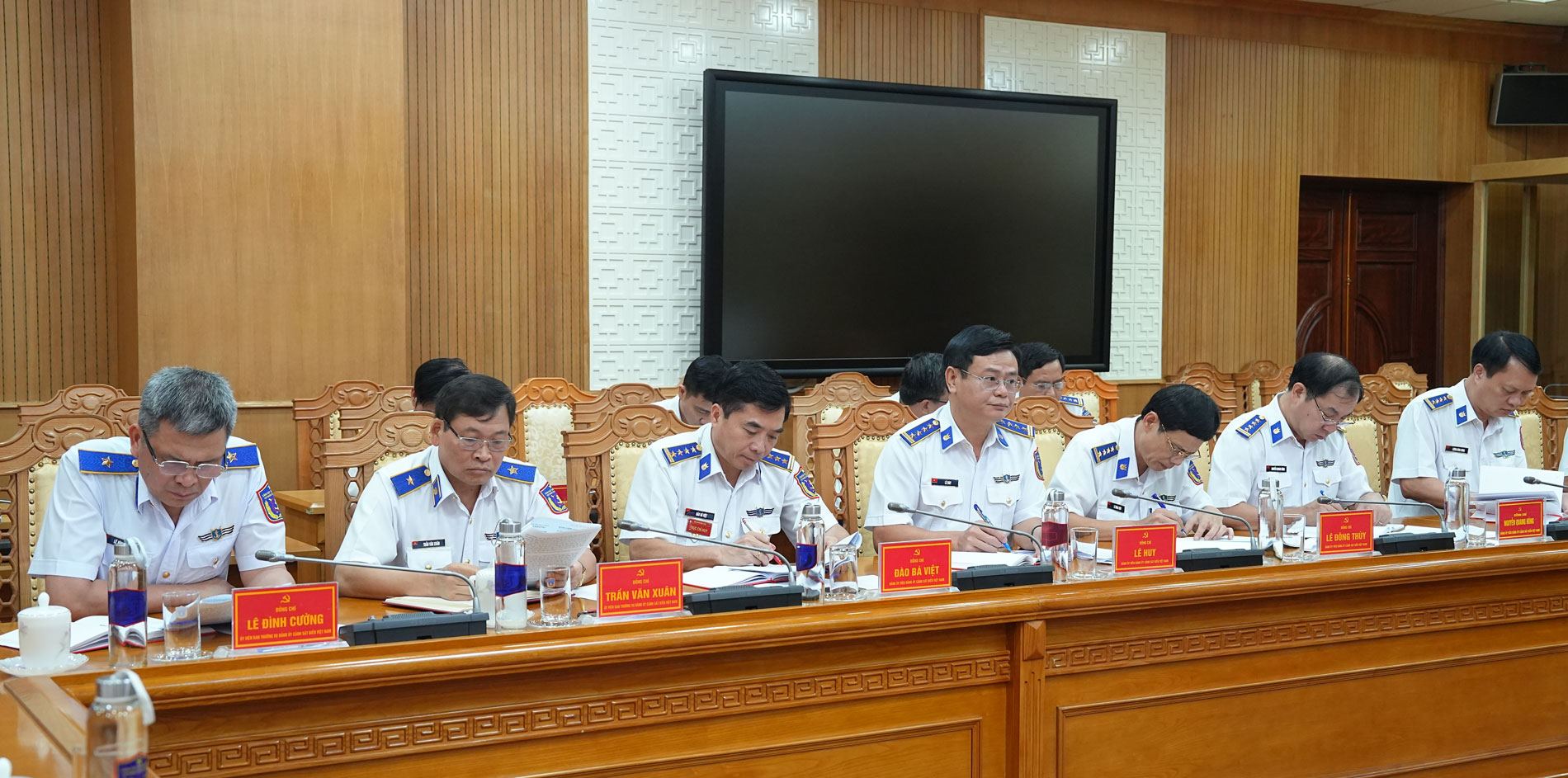Trung tướng Bùi Quốc Oai - Bí thư Đảng ủy, Chính ủy Cảnh sát biển Việt Nam chủ trì hội nghị. Cùng dự hội nghị còn có đại diện Ủy ban Kiểm tra Quân ủy Trung ương, Cục Tổ chức và các đồng chí trong Đảng ủy Cảnh sát biển Việt Nam.